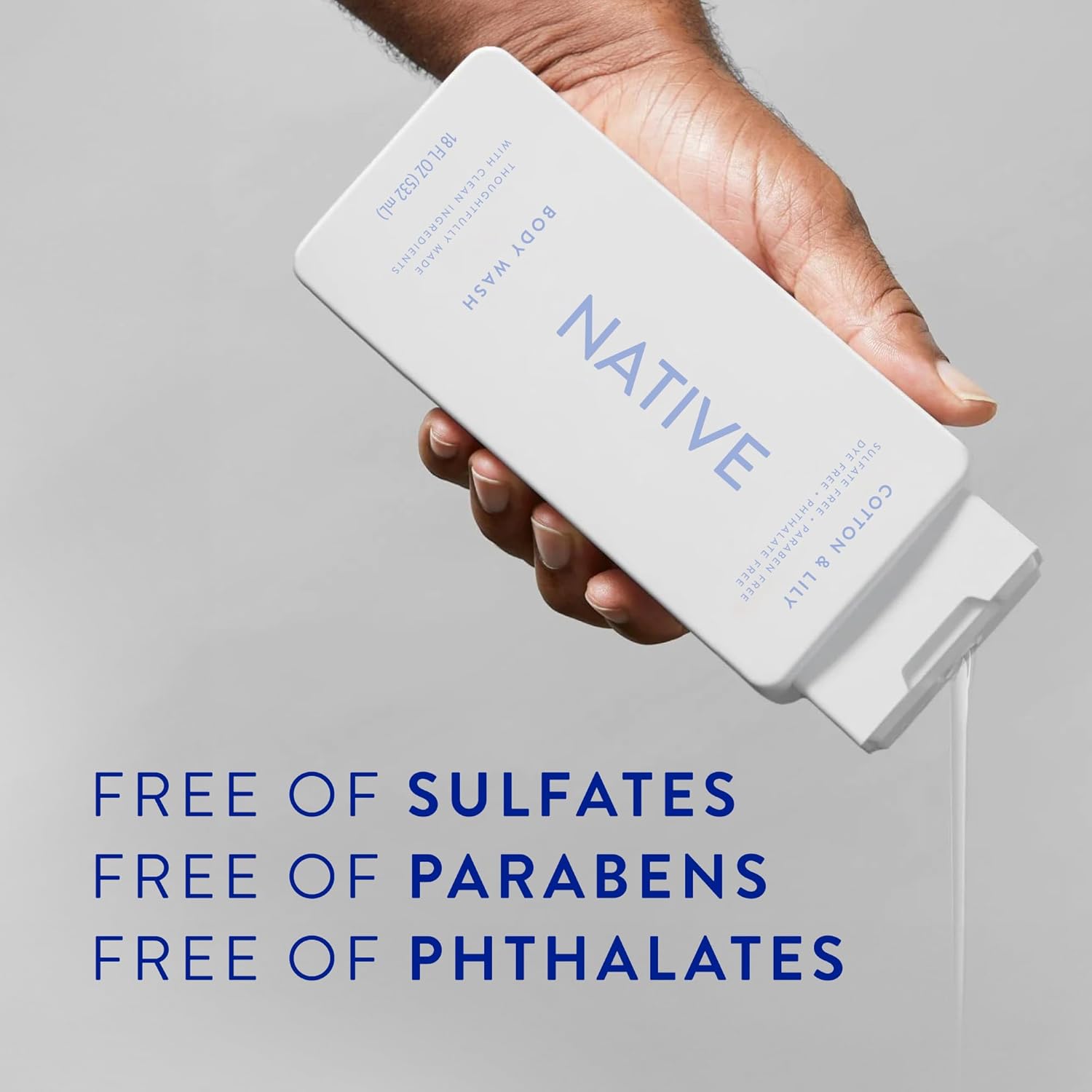 About this item Clean Ingredients - Native body wash contains naturally derived ingredients. We also use both safe, synthetic, sustainable fragrances (free of phthalates) and natural fragrances. Clean Scents - Our aromatic scents turn the routine task of showering or bathing into a memorable and luxurious experience. It's the little things in life. Soft Skin Feeling - Lovingly made with cleansers derived from coconut oil to leave your skin feeling hydrated. Transporting you to your own private white sand beach, the Native Body Wash is both sweet and sophisticated. Vegan & Cruelty Free - Our body wash is free of SLS, SLES & phthalates. Pick Your Favorite Scents - The only thing left to do is pick your favorite bath or shower time scents for a clean, refreshing, natural wash. See more product details,Clean Ingredients - Native body wash contains naturally derived ingredients. We also use both safe, synthetic, sustainable fragrances (free of phthalates) and natural fragrances,Clean Scents - Our aromatic scents turn the routine task of showering or bathing into a memorable and luxurious experience. It's the little things in life,Soft Skin Feeling - Lovingly made with cleansers derived from coconut oil to leave your skin feeling hydrated. Transporting you to your own private white sand beach, the Native Body Wash is both sweet and sophisticated,Vegan & Cruelty Free - Our body wash is free of SLS, SLES & phthalates,Pick Your Favorite Scents - The only thing left to do is pick your favorite bath or shower time scents for a clean, refreshing, natural wash