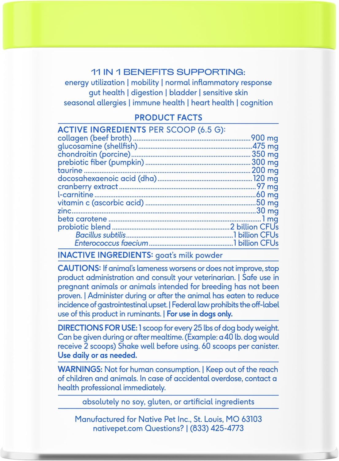 Native Pet The Daily Dog Supplement - 11 In 1 Dog Multivitamin - Tasty Scoop With Dog Vitamins And Supplements - Super Multi Vitamin For Dog Energy, Mobility, Skin & Coat - 12 Active Ingredients 14 Oz
