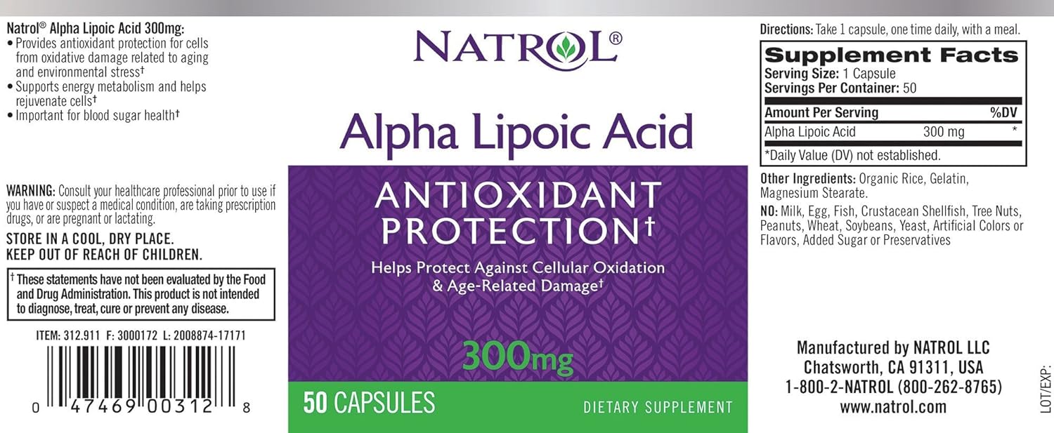Natrol Alpha Lipoic Acid 300Mg Capsules, 50 Count (Pack Of 3)