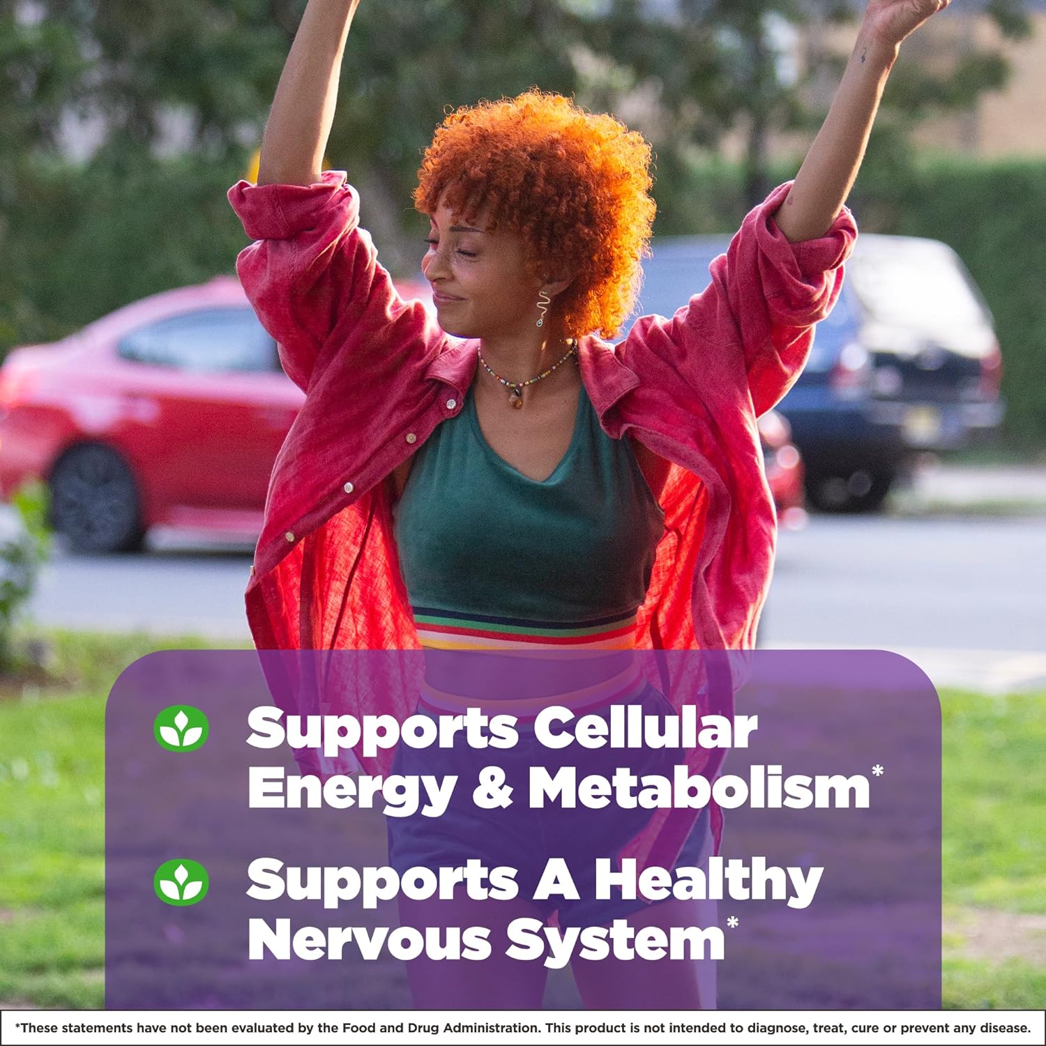 Contains all 8 of the chemically distinct B vitamins to help maintain healthy immune function, muscle tone, metabolism, skin and eye health, as well as many other bodily functions