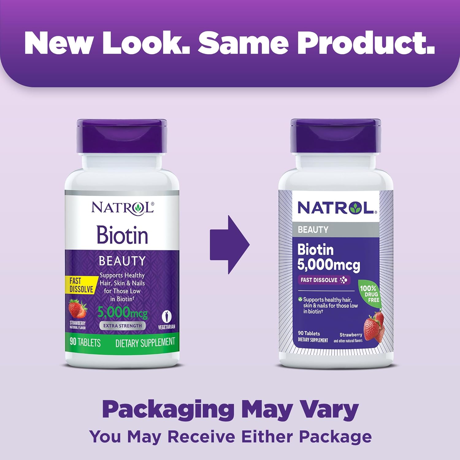 Natrol Beauty Biotin 5,000Mcg Tablets Make It Easy To Get The Daily Support For Healthy Hair, Skin And Nails For Those Low In Biotin.* Sourced From High-Quality, Non-Gmo Ingredients, This Dietary Supplement Contains No Synthetic Dyes Or Artificial Flavors. These Biotin Tablets Are Also 100% Vegetarian, Containing No Milk, Egg, Fish, Crustacean Shellfish, Tree Nuts, Peanuts, Soybeans Or Sesame. Biotin Is A Water-Soluble B Vitamin And An Important Nutrient Not Only For Hair, Skin And Nails But Also To Help Convert Food Into Energy. For Those Low In Biotin, This Natrol Supplement Offers A High Amount Of Biotin To Support Healthy Hair, Skin, Strong Nails And Energy Metabolism.* Natrol S Fast-Dissolve Formula Allows You To Take These Delicious Strawberry-Flavored Tablets Anytime, Anywhere, And Without Water. Adults, Take One Fast Dissolve Tablet Daily. Natrol Is Dedicated To Creating Innovative, Quality Products, To Help You Maintain Good Health And Thrive In Your Busy, Modern Lifestyle