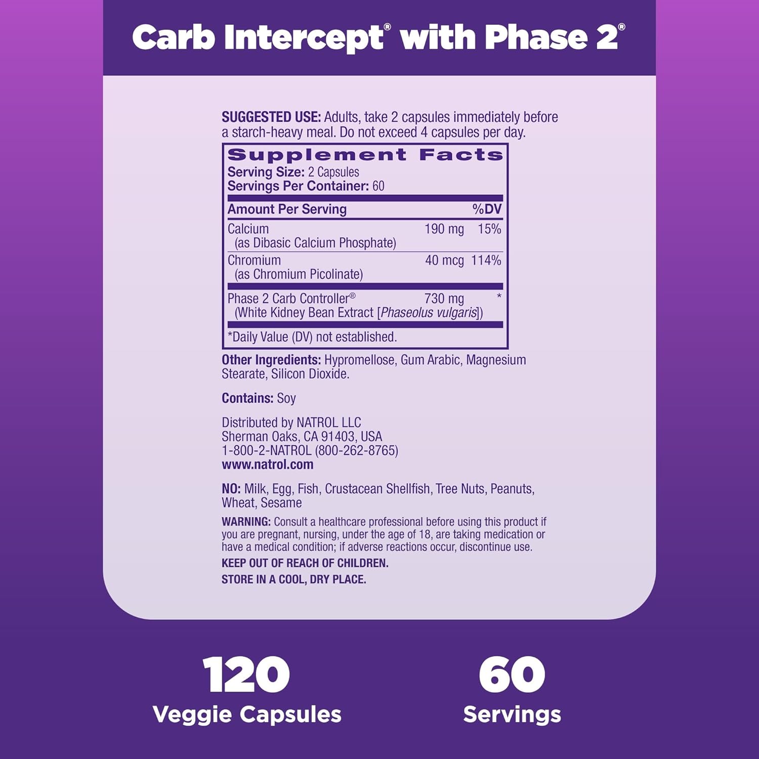 Product Description In A World Filled With Weight Management Supplements, Finding One That Is Clinically Tested And Safe To Use Can Be Challenging And Time Consuming. Natrol And Reg; Carb Intercept And Reg; Is A Daily Dietary Supplement That Features Phase2 Carb Controller, A Blend Of White Kidney Bean Extract And Food Bound Chromium. Each 1,000Mg Dose Of This Clinically Tested Ingredient Helps Reduce The Enzymatic Digestion Of Dietary Starches While Helping To Metabolize The Proteins And Fats That Help To Create Energy. Natrol Carb Intercept Supports A Low-Carb Lifestyle And Is Designed To Control Carb Digestion And Expedite The Processing Of Carbohydrates Before They Are Stored As Fat. By Delaying Digestion Of Carbohydrates , Your Body Is Able To Metabolize Fats Easier While Burning Calories, Which Helps You Manage Your Weight More Effectively. It Is Especially Effective When Combined With A Healthy Diet And Regular Exercise Program, Helping You Achieve A Healthy Body Weight. These Statements Have Not Been Evaluated By The Food And Drug Administration. This Product Is Not Intended To Diagnose, Treat, Cure, Or Prevent Any Disease. Brand Story By Natrol
