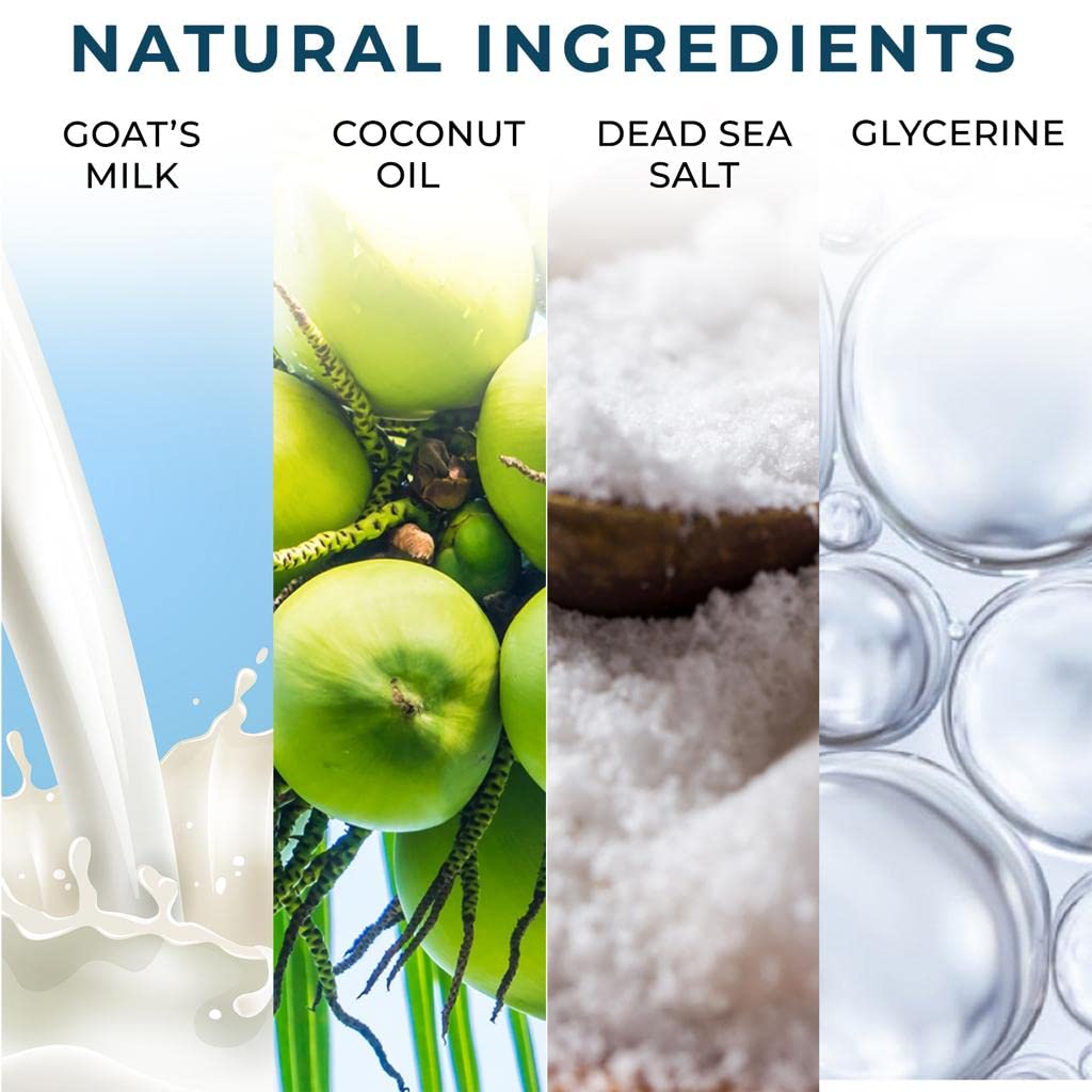 About this item SOAP INFUSED WITH DEAD SEA SALT: Dead sea salt and goat milk soap bar is a skincare product appreciated by men & women. Enriched with mineral-rich sea salts & coconut oil, the soap promotes healing & repair. HYDRATING GOAT'S MILK SOAP BASE: Consisting of pure goat's milk & enhanced with a subtle honeyed oat scent, our sea salt soap for body acne & eczema leaves skin crystal clear, silky soft & lightly scented. 100% RAW SOAP MADE FROM NATURE: This all natural dead sea salt soap for eczema & troubled skin demonstrates the powers of nature. We use only the finest ingredients to create our artisanal face & body soap bars. GENTLY EXFOLIATES & RESURFACES: Salty soap bar delivers gentle exfoliation to carry away dead skin cells & lightly resurface. Use to cleanse the face & body for a brighter, smoother, clearer complexion. SOOTHES ITCHY, PROBLEMATIC SKIN: Recommended dead sea salt soap for psoriasis, eczema & acne-prone skin. Be one with nature. Enjoy soothing relief from itching, dryness & breakouts with our raw bar soap. See more product details,SOAP INFUSED WITH DEAD SEA SALT: Dead sea salt and goat milk soap bar is a skincare product appreciated by men & women. Enriched with mineral-rich sea salts & coconut oil, the soap promotes healing & repair,HYDRATING GOAT'S MILK SOAP BASE: Consisting of pure goat's milk & enhanced with a subtle honeyed oat scent, our sea salt soap for body acne & eczema leaves skin crystal clear, silky soft & lightly scented,100% RAW SOAP MADE FROM NATURE: This all natural dead sea salt soap for eczema & troubled skin demonstrates the powers of nature. We use only the finest ingredients to create our artisanal face & body soap bars,GENTLY EXFOLIATES & RESURFACES: Salty soap bar delivers gentle exfoliation to carry away dead skin cells & lightly resurface. Use to cleanse the face & body for a brighter, smoother, clearer complexion,SOOTHES ITCHY, PROBLEMATIC SKIN: Recommended dead sea salt soap for psoriasis, eczema & acne-prone skin. Be one with nature. Enjoy soothing relief from itching, dryness & breakouts with our raw bar soap
