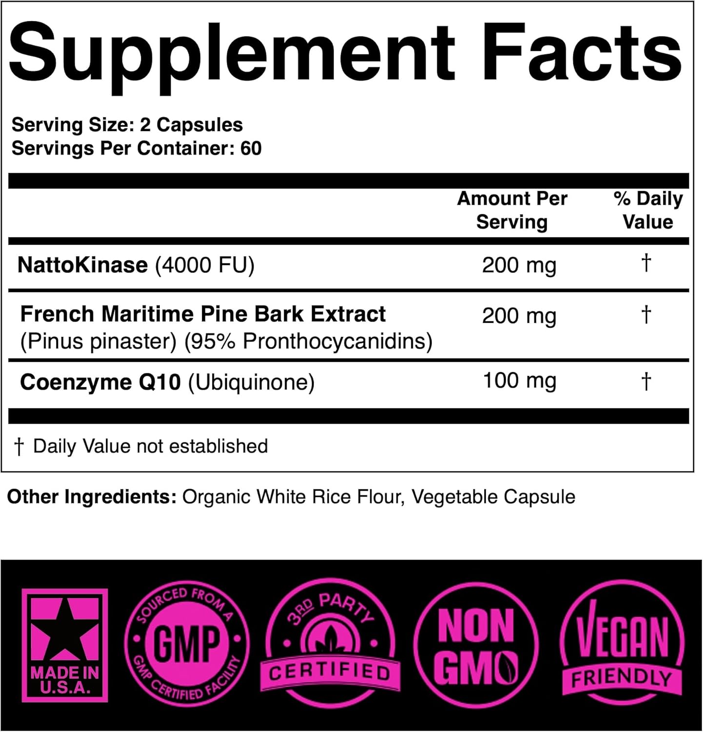 Synergistic Formula In Pine Bark Extract Capsules: With 4000 Fu Nattokinase, 200Mg French Maritime Pine Bark Extract, And 100Mg Coq10, This Formula Offers A Balanced Blend Designed For Circulatory Support, Energy, And General Wellness