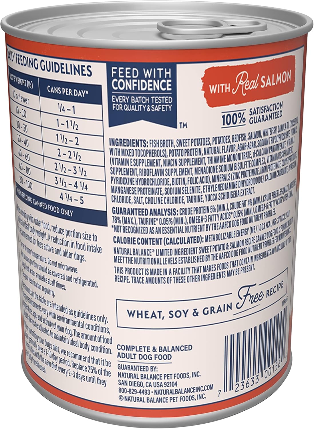 Natural Balance Limited Ingredient Adult Grain-Free Wet Canned Dog Food, Sweet Potato & Salmon Recipe, 13 Ounce (Pack Of 12)