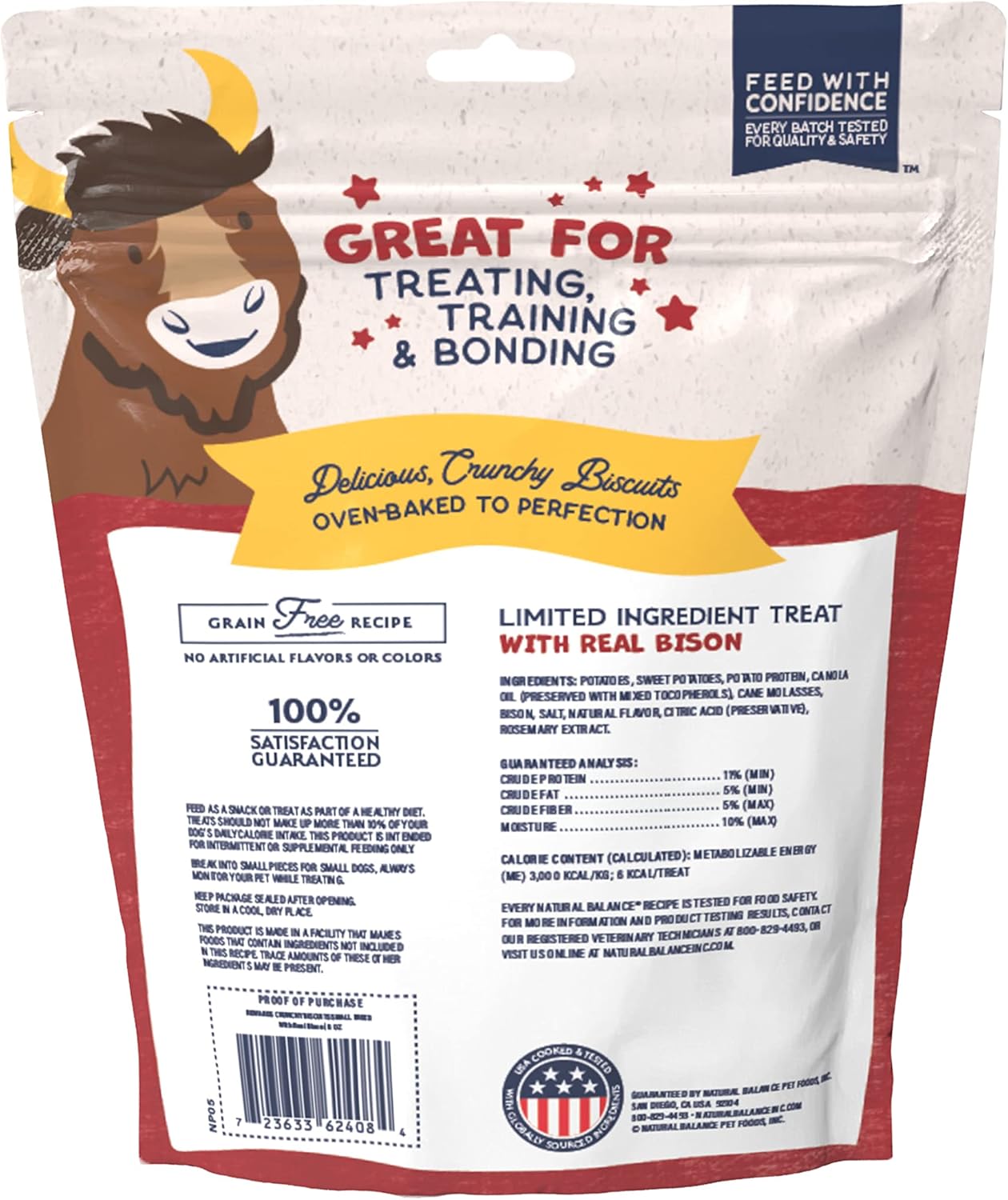 Natural Balance Limited Ingredient Rewards Crunchy Biscuits, Bite-Size Grain-Free Dog Treats For Small-Breed Adult Dogs, Made With Real Bison, 8 Ounce (Pack Of 1)