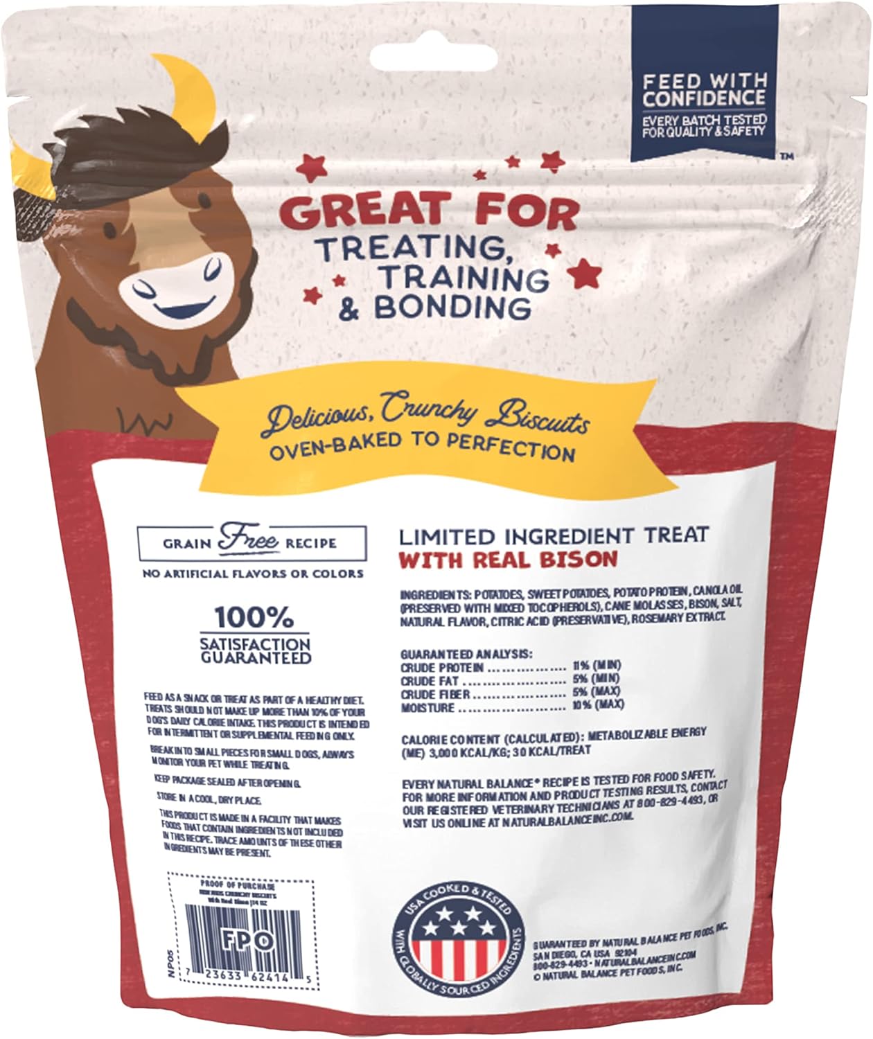 Natural Balance Limited Ingredient Rewards Crunchy Biscuits, Grain-Free Dog Treats For Adult Dogs Of All Breeds, Sweet Potato & Bison Recipe, 14 Ounce (Pack Of 1)