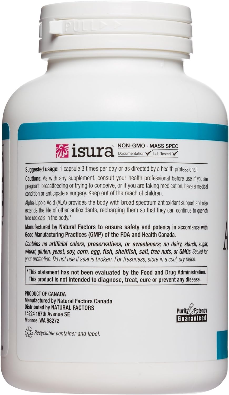 Natural Factors, Alpha-Lipoic Acid 200 Mg, Antioxidant Support To Help Maintain Glucose Levels Already In A Normal Range, 120 Capsules (120 Servings)