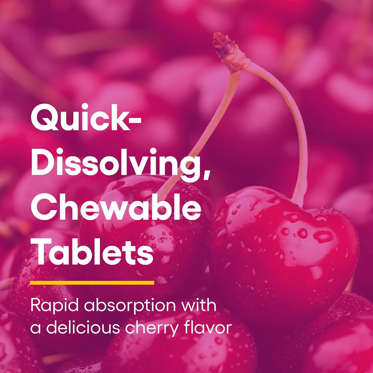 Convenient Chewables: These quick-dissolving, small-sized tablets come in a delicious cherry flavor, eliminating the need to swallow large pills or capsules