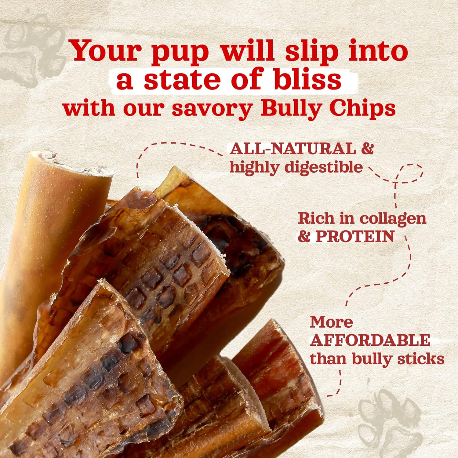 Bully Chips Are Made From 100% Natural Beef Cheek From Free-Range, Grass-Fed Cattle And Feature An Engaging Dual Texture And Flattened Design. Packed With High-Quality Protein And Collagen, These Highly Digestible Chews Promote Healthier Skin, Coats, Joints, Muscles, And Dental Health