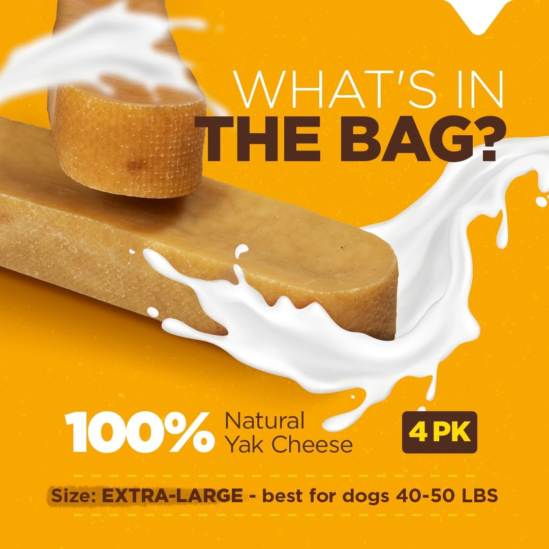 Natural Farm Himalayan Yak Cheese, Protein-Rich, Low-Allergen, Lactose-Free, Gluten-Free, 100% Natural - Extra-Large, 4 Pack