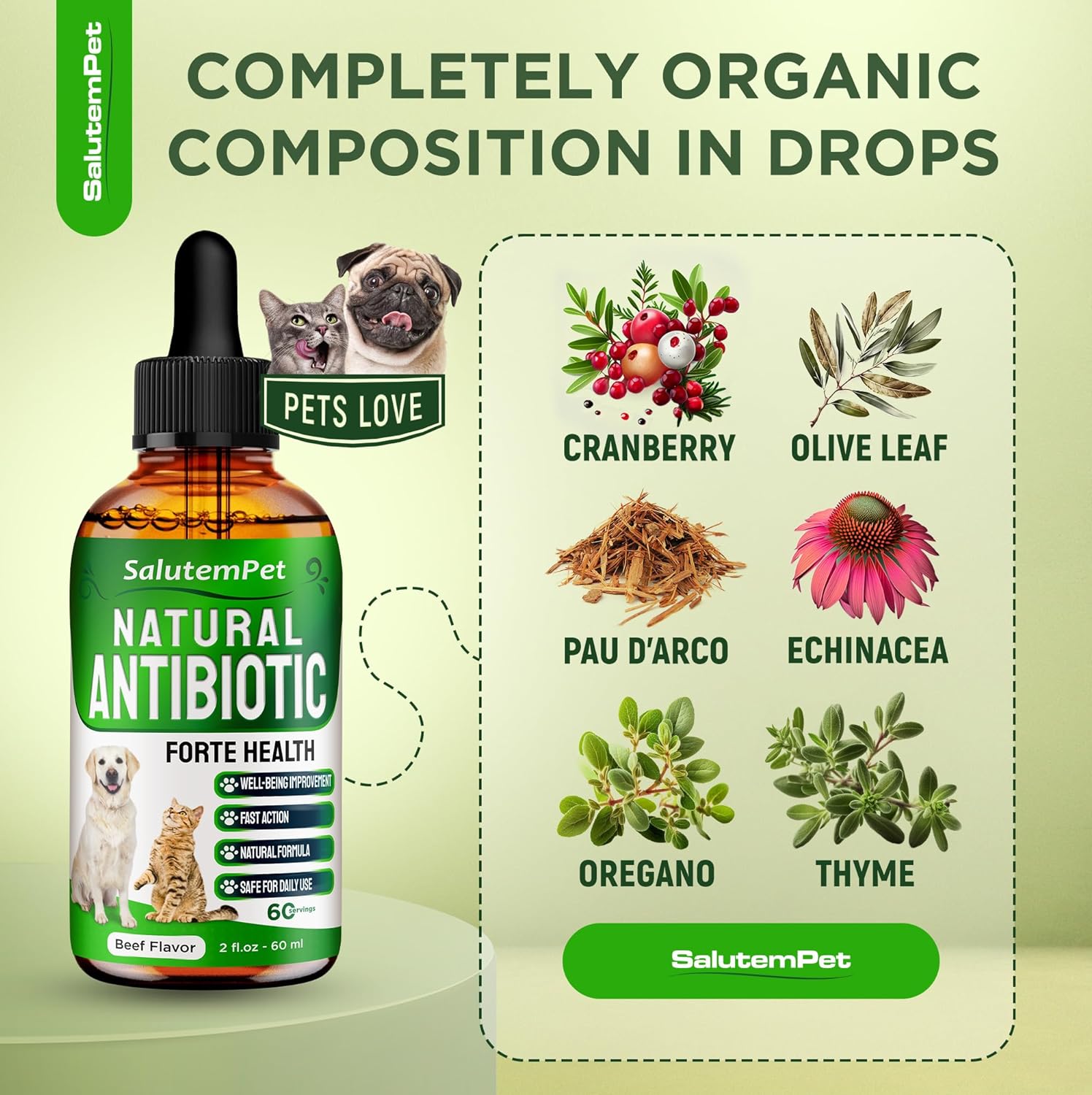NATURAL ANTIBIOTIC FOR DOGS AND CATS: Organic product that may help your Pet to feel great with a balanced composition and easy-to-use form10PET ANTIBIOTIC: Powerful formulation supports Dogs and Cats with the most common problems. It has a mild herbal action!10DESIGNED FOR YOUR DOGS AND CATS: The supplement is suitable for all breeds, ages and sizes. The liquid is quickly absorbed and has a supportive effect10ANTIBIOTIC FOR CATS: Cats often experience discomfort from UTI, but this can be avoided with our Natural Supplements10IMMUNE SYSTEM ENHANCE: Our Forte Health can assist in strengthening your pet's natural defenses to help them resist common health problems