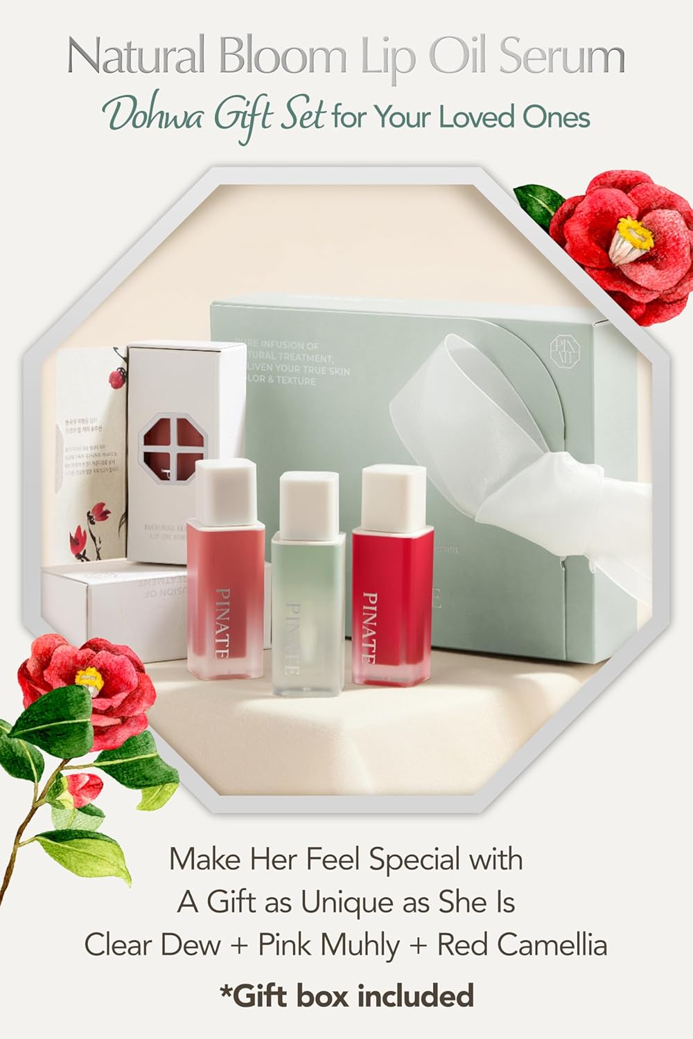 Natural Lip Oil - Dohwa Set, Gift Set, Powerful Glow Lip Oil Serum - Nourishing & Protecting Lip Care That Naturally Brings Out Own Colors With Camellia Seed Oil. 0.14 Fl. Oz (Set Of 3), Red