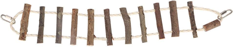Highly popular climbing toy. The rungs on this Natural Log Ladder Bridge Parrot Toy β Large are bark so your bird can spend many hours peeling it all off. There is a number of ways we can think of using it to keep your bird entertained. Fasten it across two points as a bridge, or down the bars on one side of the cage creating a climbing wall, as a ladder so your bird can climb from one perch to another or as a hammock so your bird can just sit and chill. Between you and your bird there are probably loads of other ways to have fun with this Natural Log Ladder Bridge, just get inventive!