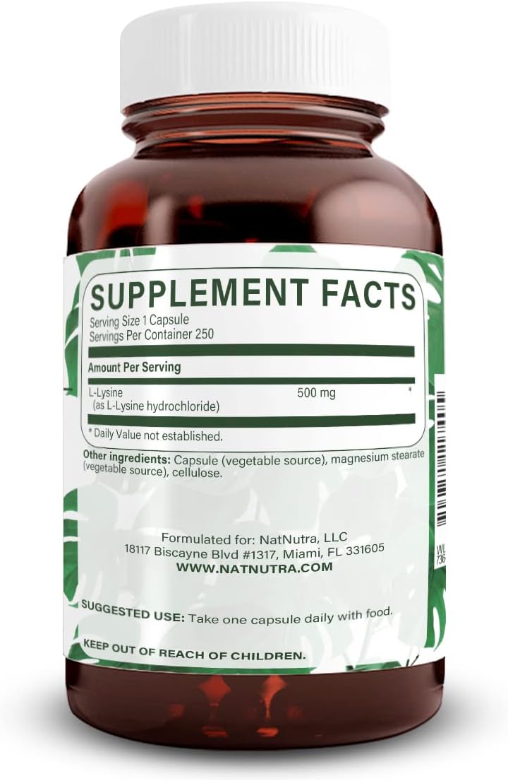 Natural Nutra L Lysine Hcl, Promotes Bone Health And Growth, Improve Calcium Absorption, Non-Gmo, Vegan, 500 Mg, 250 Capsules