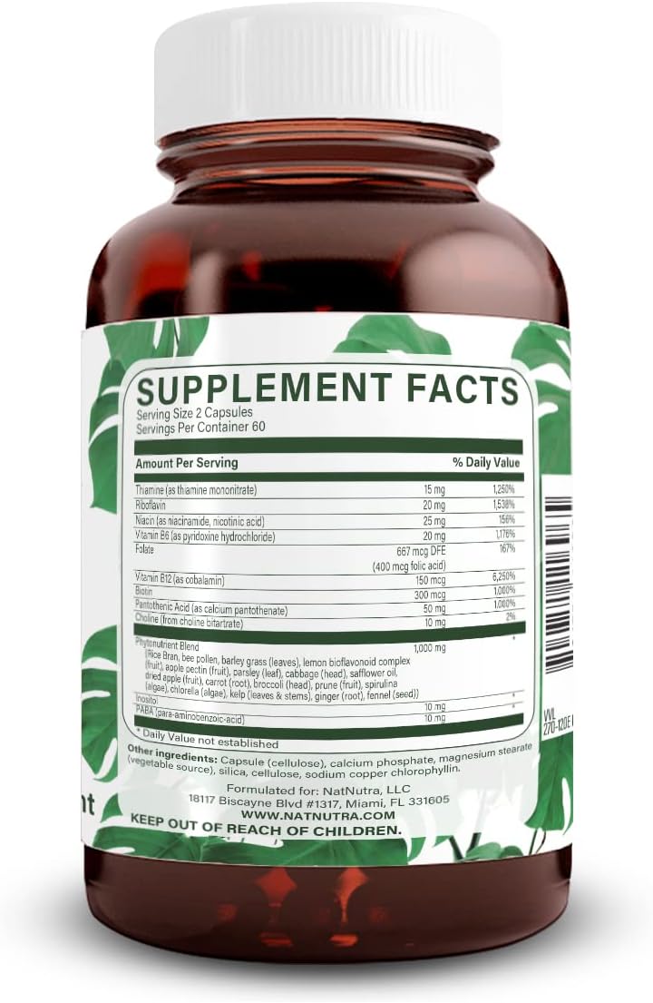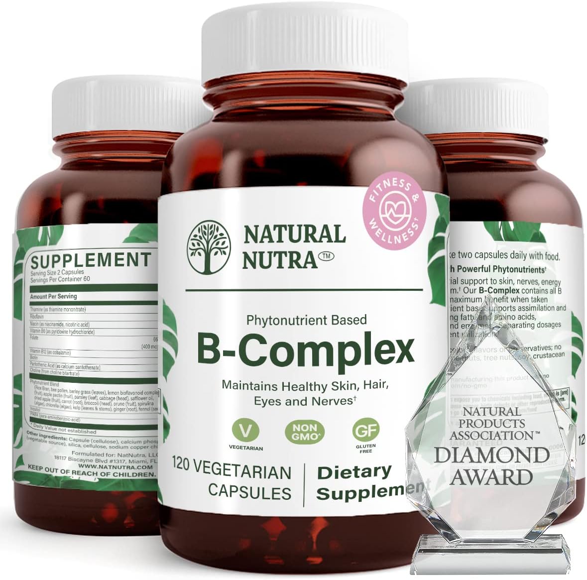 Natural Nutra Vitamin B Complex With Niacin, Folate, Thiamin, Biotin, Supports Nervous System Health, Skin, Eyes And Hair Health, Whole Food Supplement, 120 Vegetarian Capsules