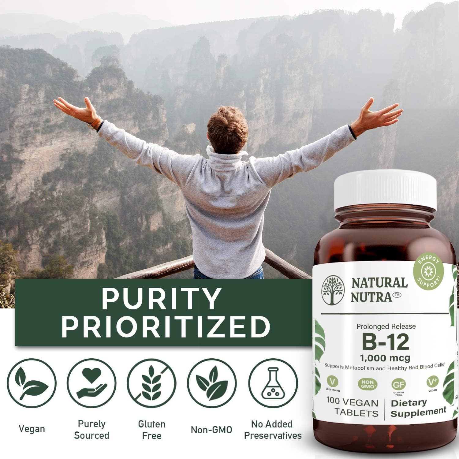 Natural Nutra Vitamin B12 1000 Mcg, Cobalamin B 12 Supplement, Calcium Phosphate, Help In Metabolism Health, Optimal Absorption, Gluten Free, Sugar Free, 100 Vegan Tablets