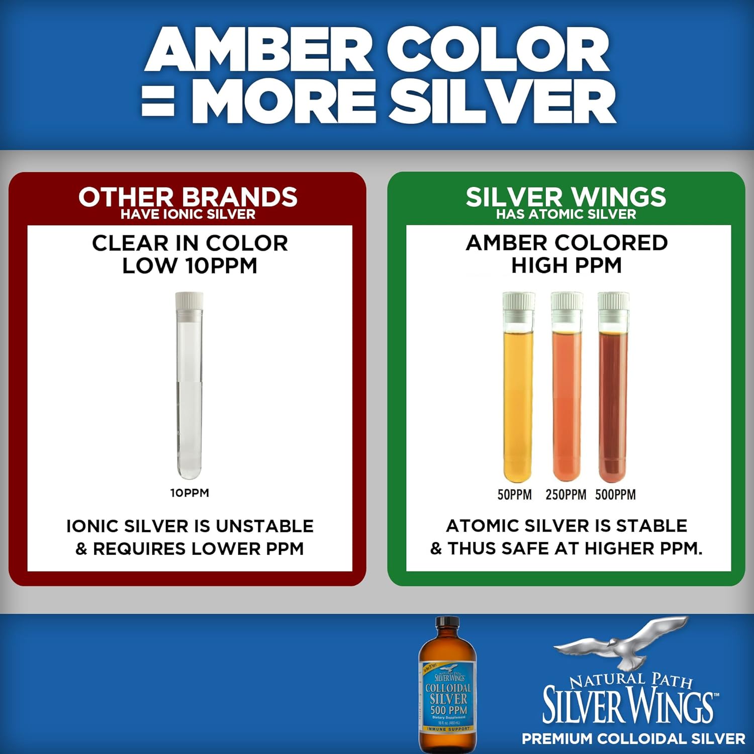 Natural Path Silver Wings Colloidal Silver 500Ppm (2,500Mcg) Immune Support Supplement 16 Fl. Oz