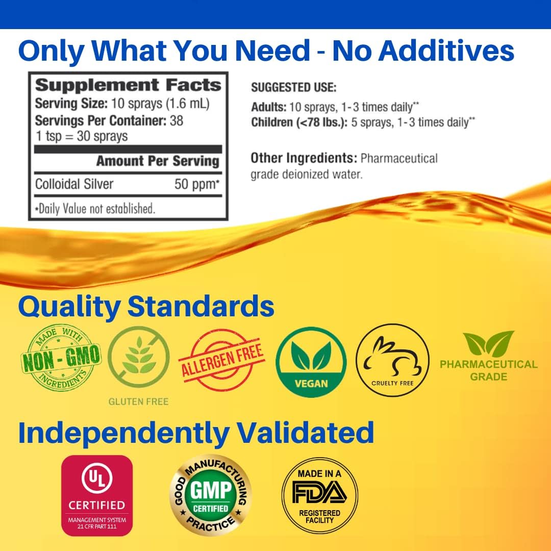 HIGH QUALITY / ULTRA PURITY: Pharmaceutical grade deionized pure water with ultra-fine pharmaceutical grade colloidal silver particles in amber glass bottles for optimal quality, integrity and protection earning 4x Best of Supplements awards, 2x Natural Choice award for "Best Immune Products" and Vity Award winner