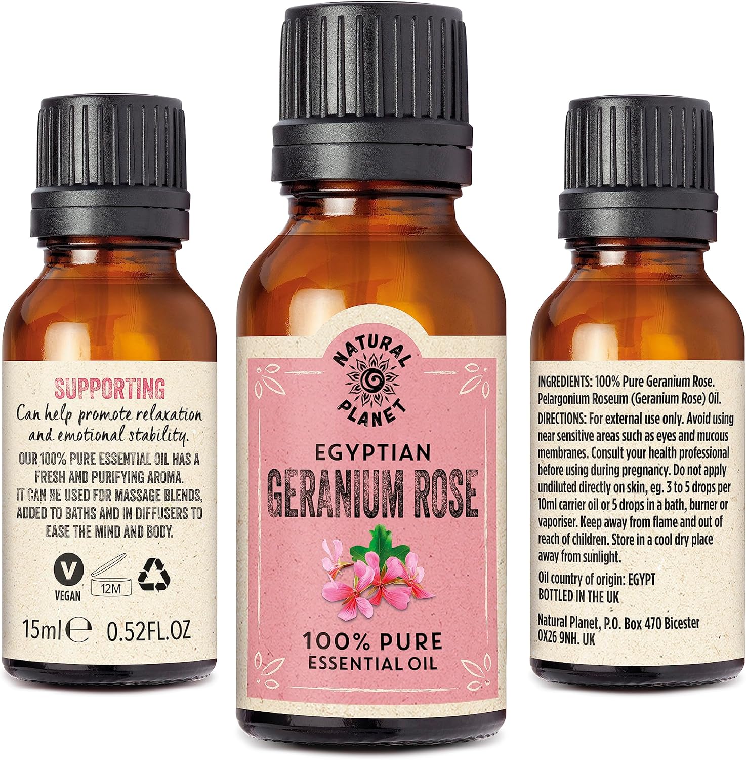 Natural Planet Geranium Essential Oil 15Ml Natural 100% Pure & Undiluted, Therapeutic Grade Pure, Cruelty Free