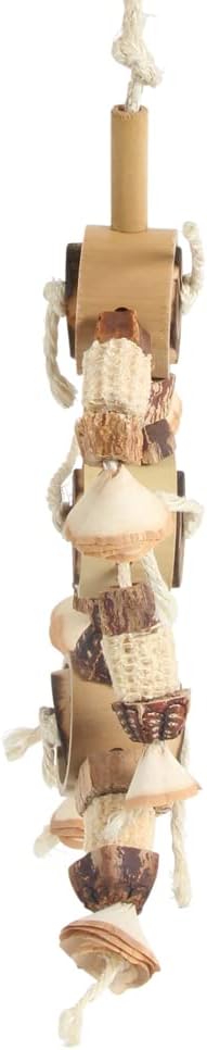 Lots of natural materials to chew on. This Natural Rings Parrot Toy – Large is perfect for your Parrot to enjoy pulling to pieces. Stacked on a length of sisal rope your beaky buddy can enjoy chewing on the bamboo hoops and wood discs, as well as shredding up the corn cobs and mahogany pod slices. The selection of natural materials is not only fun to chew, but helps your feathered friend keep their ever-growing beak healthy and trim. With the lengths of knotted sisal rope, thereâ€s hundreds of fibres to pick and preen at. Plus, puzzle loving Parrots can spend their time untying the knots for further stimulation. Use the metal quick link provided to quickly and securely fasten this Large Natural Rings to your birdâ€s cage or play gym stand. Dimensions Total Length 60cm (23.5") Width 20cm (7.75") Materials Bamboo, Mahogany Pods, Corn Cob, Wood, Sisal, Metal African Grey Parrots - Amazon Parrots - Caiques - Eclectus Parrots - Large Conures - Meyer's and Senegal Parrots - Quakers also known as the Monk Parakeet - Small Conures - Small Macaws or Mini Macaws Please remember this information is for size guidance only - you know your bird best!