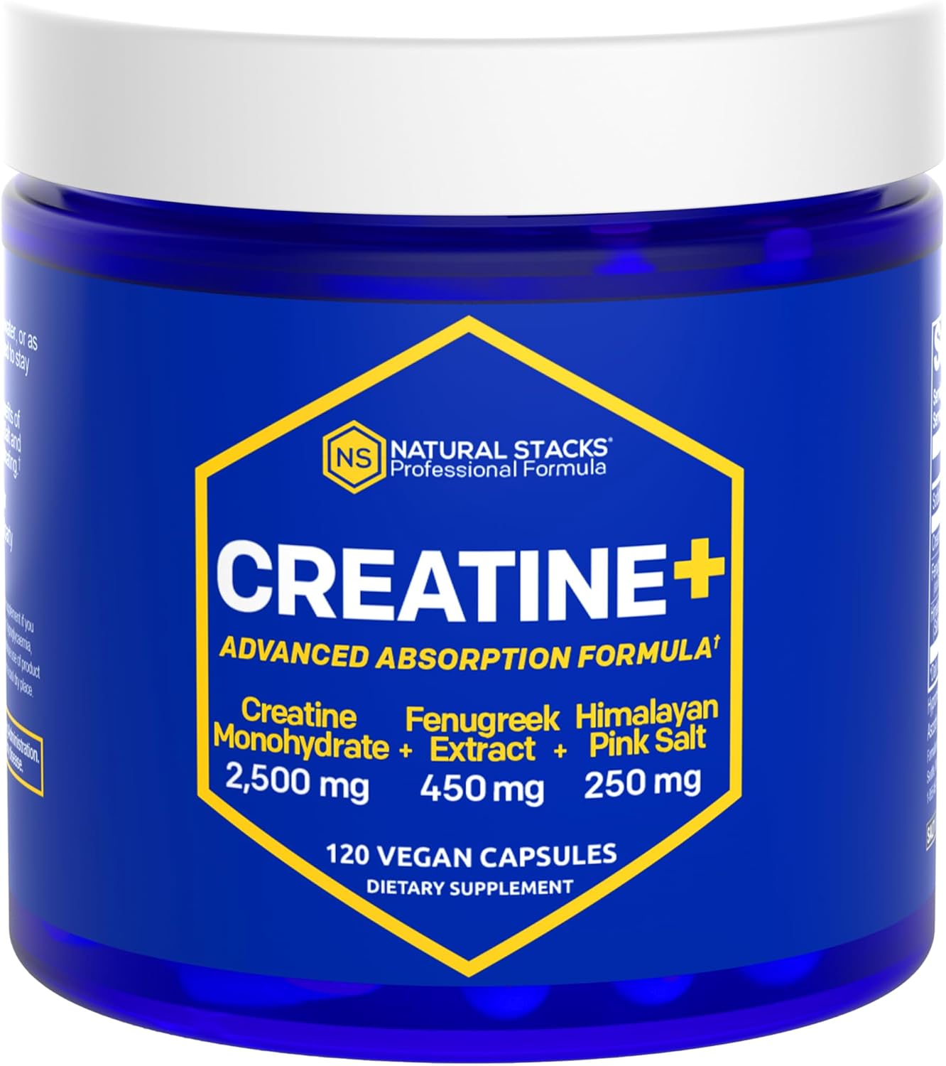 Natural Stacks Creatine Monohydrate Pills 2500Mg - Maximum Absorption Formula W/Himalayan Salt & Fenugreek | Supports Brain Health, Endurance & Muscle Building - 120 Creatine Capsules