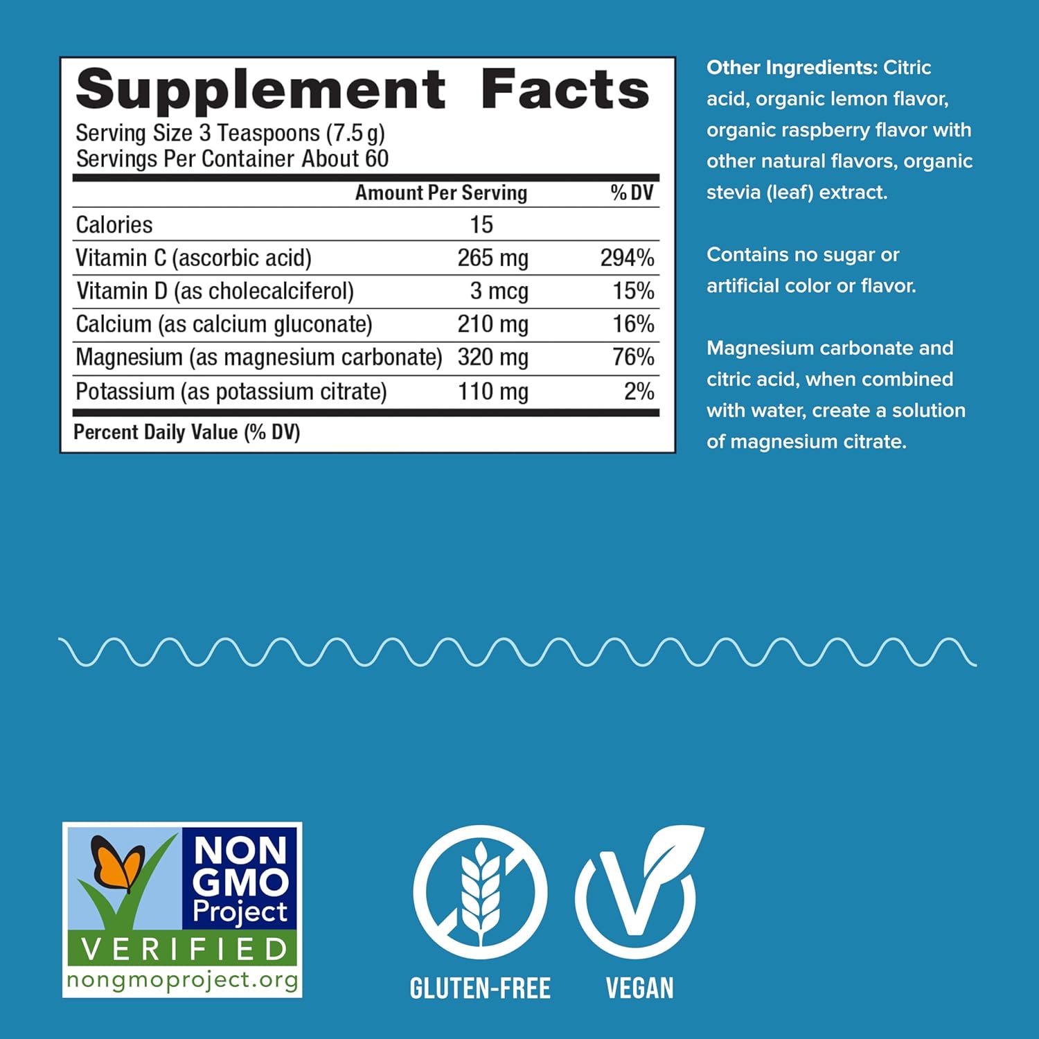 Natural Vitality Calm Magnesium Supplement Drink Mix Plus Calcium Contains A Unique Calcium Magnesium Blend That Gives You The Calcium You Need With The Calm You Want, All In A Convenient Powder Drink Mix. With 350 Mg Of Magnesium Per Serving, This Drink Mix Replenishes Depleted Magnesium Levels To Help You Feel Relaxed And Calm (1). Formulated With Magnesium Carbonate And Citric Acid, Natural Calm Magnesium Powder Combines With Water To Create A Magnesium Citrate Solution, Which Is Better Absorbed Than Magnesium Oxide (1). This Liquid Magnesium Is Also Combined With Calciuman Important Nutrient Essential For Maintaining Total Body Healthnot Just To Keep Your Bones And Teeth Strong, But To Ensure Proper Functioning Of Muscles And Nerves (1). These Vegetarian, Gluten-Free, Raspberry Lemon-Flavored Supplements Contain No Sugar Or Artificial Flavor Or Color. Simply Mix This Powder Drink Mix With Water For A Delicious Beverage You Can Enjoy Any Time. (1) These Statements Have Not Been Evaluated By The Food And Drug Administration. This Product Is Not Intended To Diagnose, Treat, Cure Or Prevent Any Disease