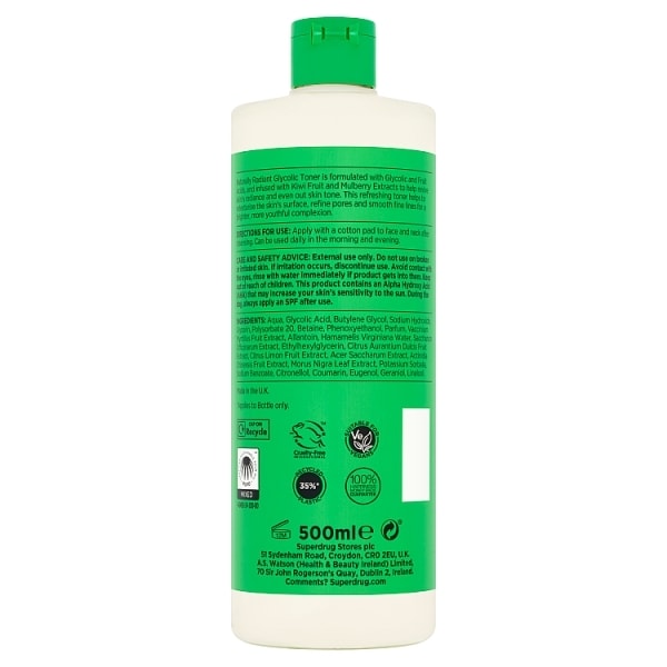 Product Information:Reveal Your SkinâS Natural Radiance With Our Glycolic Tonic, A Potent Exfoliating Solution That Brightens And Smooths. With Glycolic Acid At 5%, This Tonic Gently Exfoliates, Helping To Reveal A More Radiant Complexion. Betaine Provides Moisture And Hydration, While Witch Hazel Soothes And Calms, Making It Suitable For Daily Use. The Inclusion Of Acb Fruit Mix Ensures Your Skin Benefits From The Natural Glow-Boosting Properties Of Five Natural Ahas, Leaving Your Skin Looking Fresh And Radiant,Features:Awakens Skins Natural Glow Smoothes, Tones And Brightens Skin Active Ingredients: Glycolic Acid, Fruit Acid Blend, Witch Hazel Infused With Fruit Extracts,Warning Or Restrictions:External Use Only. Do Not Use On Broken Or Irritated Skin. If Irritation Occurs, Discontinue Use. Avoid Contact With The Eyes, Rinse With Water Immediately If Product Gets Into Them. Keep Out Of Reach Of Children. This Product Contains An Alpha Hydroxy Acid (Aha) That May Increase Your Skin'S Sensitivity To The Sun. During The Day, Always Apply An Spf Moisturiser After Use,Product Specification:Aqua, Glycolic Acid, Butylene Glycol, Sodium Hydroxide, Glycerin, Polysorbate 20, Betaine, Phenoxyethanol, Parfum, Vaccinium Myrtillus Fruit Extract, Allantoin, Hamamelis Virginiana Water, Saccharum Officinarum Extract, Ethylhexylglycerin, Citrus Aurantium Dulcis Fruit Extract, Citrus Limon Fruit Extract, Acer Saccharum Extract, Actinidia Chinensis Fruit Extract, Morus Nigra Leaf Extract, Potassium Sorbate, Sodium Benzoate, Citronellol, Coumarin, Eugenol, Geraniol, Linalool,Product Uses:Apply With A Cotton Pad To Face, Neck And DĂ©colletĂ© After Cleansing. Can Be Used Daily In The Morning And Evening,Recyclable:Cap On Recycle