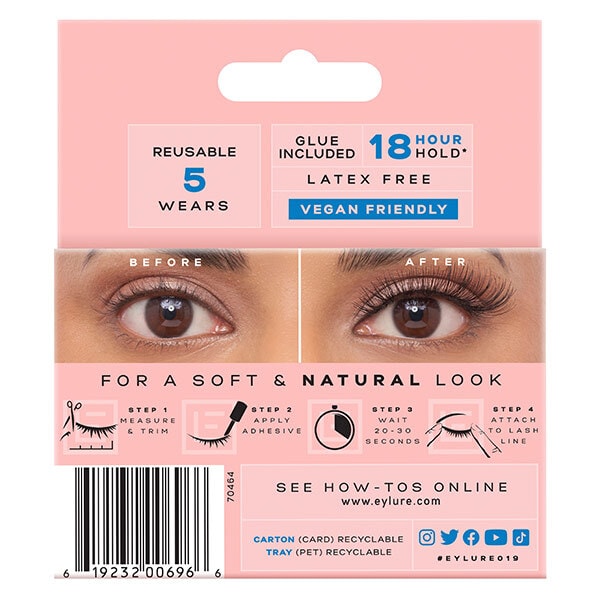 Product Information:Naturals No.019 is a cute and fluffy lash with a gorgeously natural finish. Handmade and reusable for up to 5 wears, every lash pack also comes with our latex free lash glue that is guaranteed to last up to 18 hours,Product Specification:Acrylates/ Ethylhexyl Acrylate Copolymer, Aqua (Water), Propylene Glycol, Phenoxyethanol, Ethylhexylglycerin