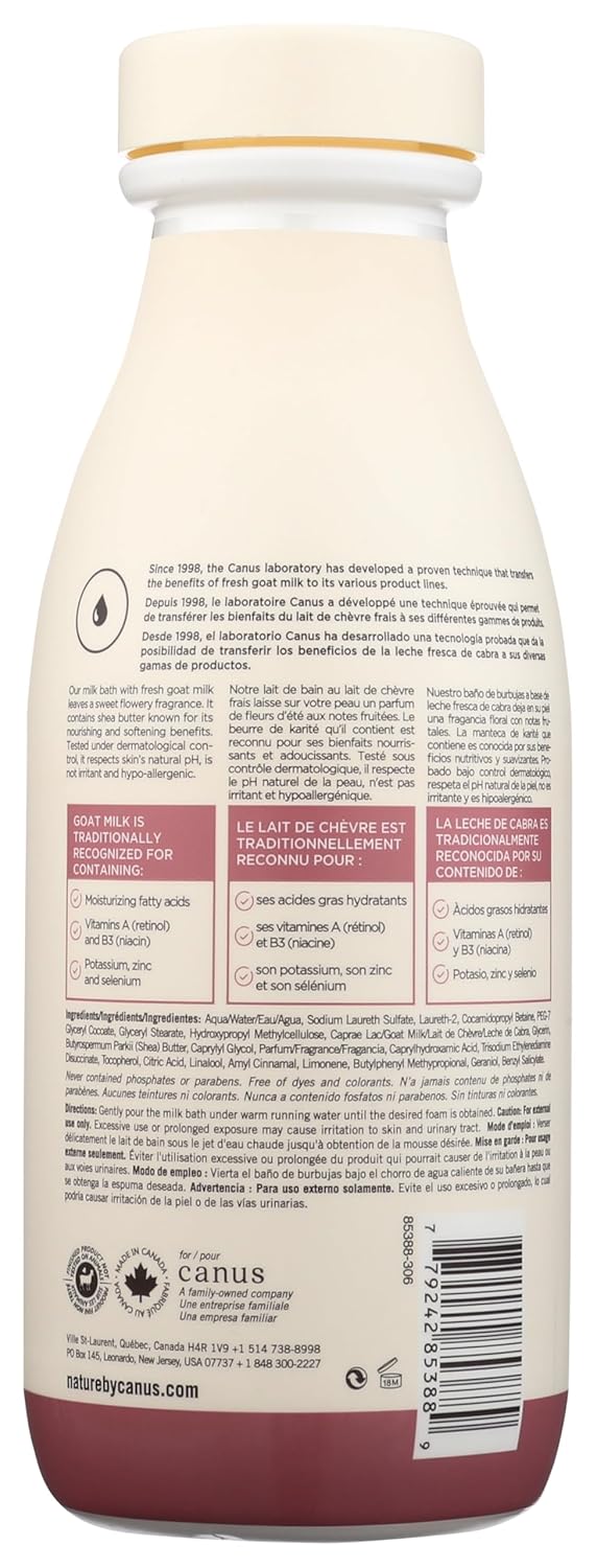 Since 1998, the Canus Laboratory has developed a proven technique that transfers the benefits of fresh goat milk to its product lines. Goat milk is recognized for containing moisturizing fatty acids, vitamins, potassium, zinc and selenium. The goat milk cream is a natural moisturizer for soothing dry and damaged skin. Full of essential nutrients and vitamins A, B2, B3, B6, B12, and E, and proteins that feed the skin, contributing to a deep and extended hydration. All those benefits are encapsulated in our goat milk skincare products! Our fresh goat milk foaming milk bath contains real shea butter known for its nourishing and softening benefits. In respect to Mother Nature, all our ingredients are meticulously sourced from responsible producers,Contains: (1) 27.1 Ounce bottle of Nature By Canus Foaming Milk Bath, Shea Butter,Our fresh goat milk foaming milk bath is naturally packed with fatty acids, vitamins A (retinol) and B (niacin), potassium, zinc, and selenium,Our fresh goat milk foaming milk bath contains real shea butter known for its nourishing and softening benefits,Our foaming milk bath is famously known for its soft and soothing lather,Our foaming milk bath is not tested on animals