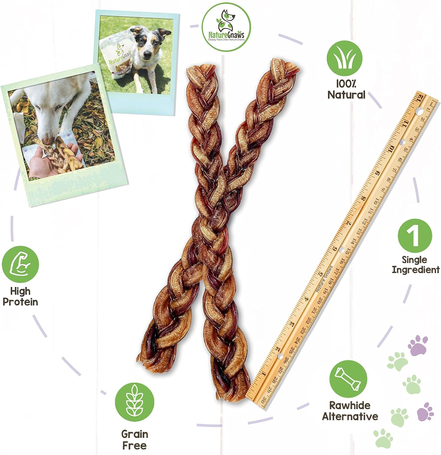 Nature Gnaws Braided Bully Sticks For Dogs - Premium Natural Beef Dental Bones - Long Lasting Dog Chew Treats For Aggressive Chewers - Rawhide Free