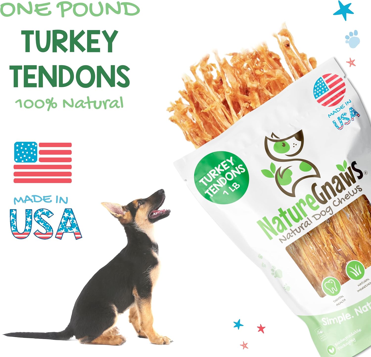 Nature Gnaws Usa Turkey Tendons For Dogs (1Lb) - Delicious Grain Free Reward Snack For Small, Medium & Large Breeds - Premium Natural Dog Chew Treats