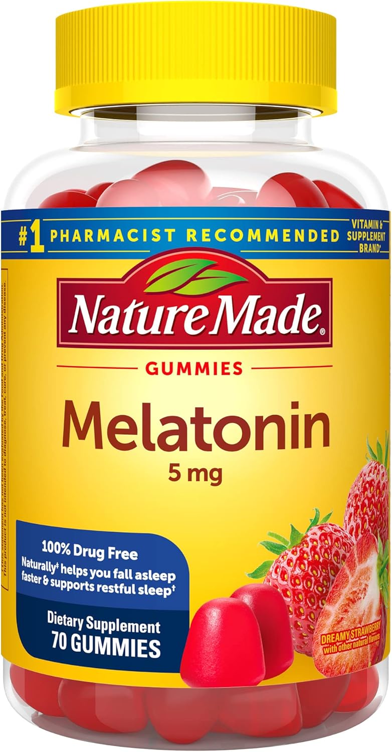 Nature Made Melatonin 5Mg, 100% Drug Free Sleep Aid For Adults, 70 Gummies, 70 Day Supply