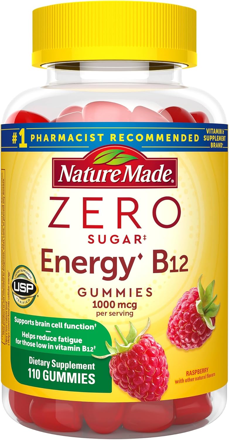 The Gummies You Love Now With Zero Sugar!(1) Nature Made Zero Sugar (1) Energy (2) Vitamin B12 Gummies Provide 1000 Mcg Of B12 Per Serving. B12 Is An Essential Vitamin That Supports Brain Cell Function, Cellular Energy Production, And Helps Reduce Fatigue For Those Low In Vitamin B12. These Vitamin B12 1000 Mcg Per Serving Gummies Are Pectin Based, Gluten Free And Aspartame Free With No Artificial Flavors, No High Fructose Corn Syrup And No Color Added – B12 Is Red In Color. Best Of All, Our Vitamin B12 Sugar Free Gummies Have No Sugar (1) And Come In A Tasty Raspberry With Other Natural Flavors. Adults, Chew 2 Gummies Daily. Start Your Day With Sugar Free B12 Vitamins (1) From Nature Made. Usp Has Tested And Verified Ingredients, Potency And Manufacturing Process. Usp Sets Official Standards For Dietary Supplements. Visit The Usp Verified Website For More Information. (1)Not A Low Calorie Food (2)Helps Convert Food Into Cellular Energy *Based On A 2022 Survey Of Pharmacists Who Recommend Branded Vitamins And Supplements. These Statements Have Not Been Evaluated By The Food And Drug Administration. This Product Is Not Intended To Diagnose, Treat, Cure, Or Prevent Any Disease