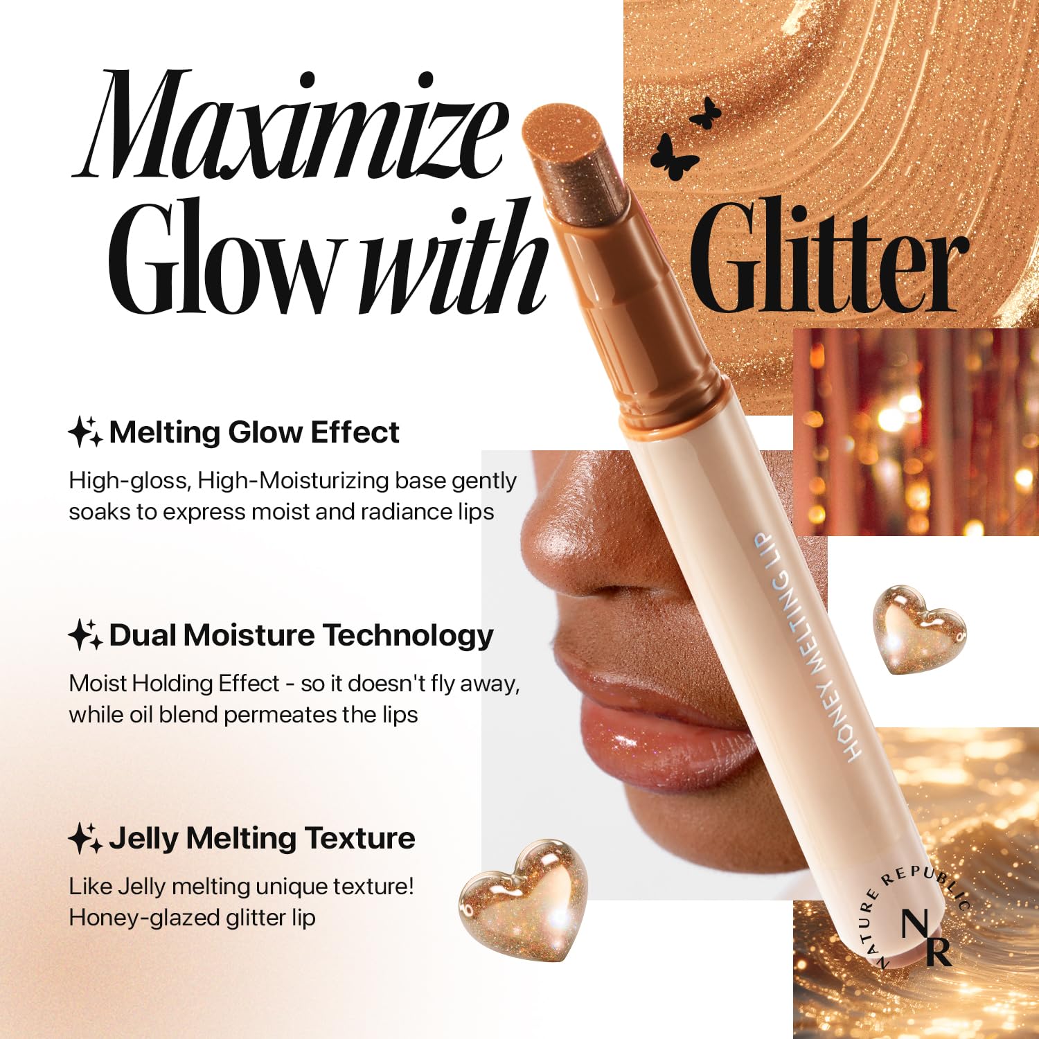 Nature Republic Honey Melting Lip Glitter (14 Maple) Soft Lip Stick,Lip Gloss, Glow Lip, Glossy, Lip Balm, Lip Crayon, Jelly Gloss, Lip Pen, Lip Glitter,Valentines Day Gifts, Korean Make Up