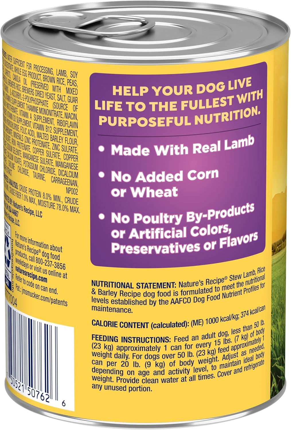 Give Your Dog A Wag-Worthy Flavor Adventure With Nature’S Recipe Stew Lamb, Rice & Barley Recipe Wet Dog Food. It’S More Than Just An Enjoyable Canned Dog Food — It’S Natural Dog Food Made With Added Vitamins, Minerals And Nutrients To Help Support All Your Dog’S Needs. This Recipe Was Formulated By Expert Pet Nutritionists To Include Purposeful Ingredients Like Real Lamb. And Because We Believe That Every Ingredient Counts, You’Ll Find No Added Corn Or Wheat, No Poultry By-Product, And No Artificial Colors, Flavors Or Preservatives In This Wholesome Recipe. So, Crack Open A Can And Fuel The Wag With A Tasty Meal That Provides All Your Dog Needs, And Nothing They Don’T