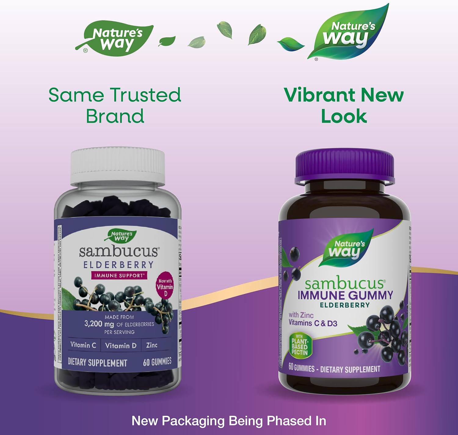 Nature’S Way Sambucus Elderberry Immune Gummies, Daily Immune Support For Kids And Adults*, With Vitamin C, Vitamin D3, Zinc, Gluten Free, Vegetarian, 60 Gummies (Packaging May Vary)