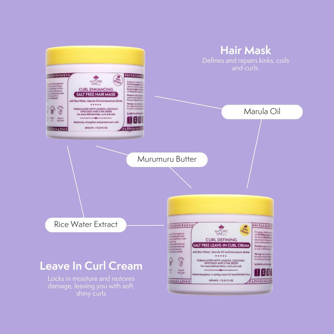 Nature Spell Curl Enhancing Haircare Collection, Includes Shampoo And Conditioner, Hair Mask & Leave-In Curl Cream, Nourishes & Strengthens Hair, 4 Products