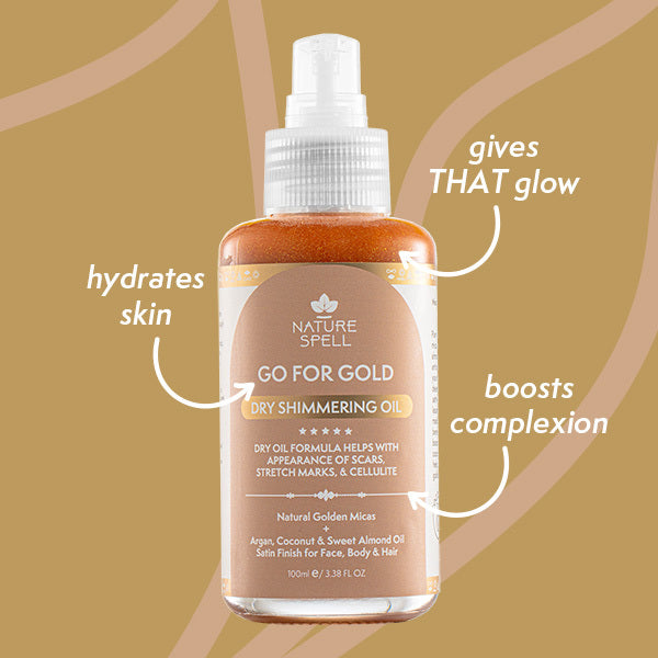 Combining Sustainable Golden Mica, Argan Oil, Coconut Oil, And Sweet Almond Oil, Our Go For Gold Dry Shimmer Oil Is A Non-Greasy Formula Which Will Illuminate The Face, Body, And Hair. Offering A Satin-Like Finish, The Product Also Helps Lessen The Appearance Of Scars, Stretch Marks, And Cellulite. Enjoy The Anti-Aging Benefits Of Argan Oil And The Complexion-Boosting Effects Of Sweet Almond Oil. Meanwhile, Coconut Oil Can Help Shield The Skin From Bacteria, And Golden Mica Protects Against Uv R