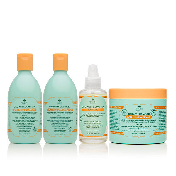 Product Information:Cleanse, Condition And Revive Your Hair With Our Moisturising And Stimulating Growth Complex Shampoo, Conditioner, Mask And Hair Oil,Features:Infused With Ayurvedic Herbs To Stimulate Healthy Hair Growth,Warning Or Restrictions:External Use Only,Product Specification:Shampoo Aqua (Water), Coco-Glucoside, Sodium Lauroyl Methyl Isethionate, Acrylates Copolymer, Helianthus Annuus (Sunflower) Seed Oil, Glycerin, Polysorbate-20, Cocos Nucifera (Coconut) Oil, Glycol Distearate, Persea Gratissima (Avocado) Oil, Butyrospermum Parkii (Shea) Butter, Theobroma Cacao (Cocoa) Butter, Parfum (Fragrance), Astrocaryum Murumuru (Murumuru) Seed Butter, Sodium Hyaluronate Crosspolymer, Hydroxypropyl Guar Hydroxypropyltrimonium Chloride, Withania Somnifera (Ashwagandha) Root Oil, Eclipta Alba (Bhringraj) Oil, Bacopa Monnieri (Brahni) Oil, Emblica Officinalis (Amla) Oil, Ocimum Basilicum Hairy Root Culture Extract, Disodium Edta, Sodium Benzoate, Panthenol, Benzyl Alcohol, Magnesium Chloride, Magnesium Nitrate, Methylisothiazolinone, Methylchloroisothiazolinone, Triethylene Glycol, Propylene Glycol, Sodium Hydroxide, Aloe Barbadensis (Aloe Vera) Leaf Juice, Pentylene Glycol, Linalool