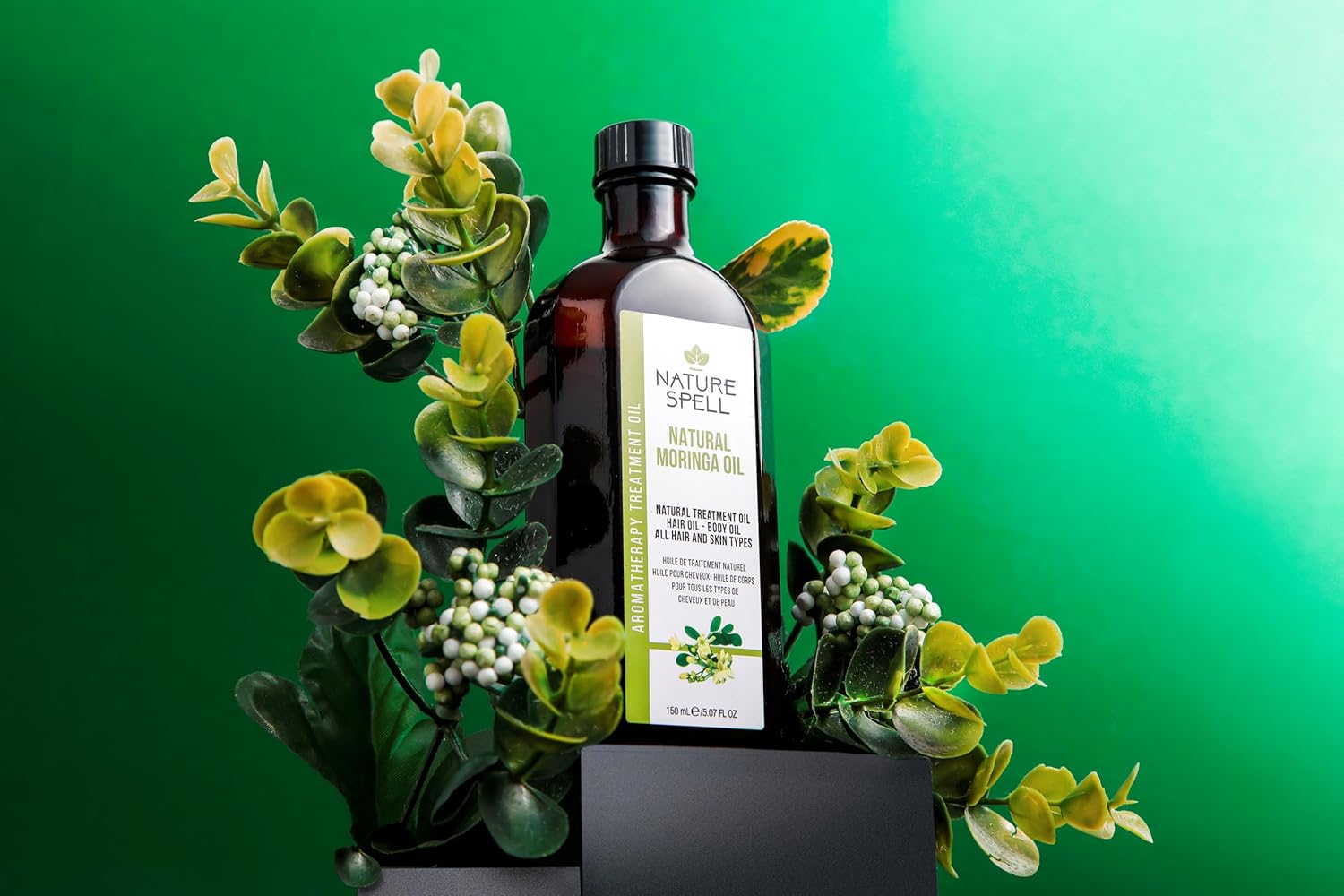About this item PACKED WITH BENEFITS: As a powerful anti-oxidant and detoxifier, moringa oil can be very beneficial. MORINGA OIL FOR HAIR: When applied to the hair, moringa can unlock moisturisers while protecting against further damage. Hair feels soft, supple & shining. Moringa contains vitamins A, B and E which help promote natural hair growth. MORINGA OIL FOR SKIN: When rubbed onto the body, moringa can reduce pain caused by inflammation and ease swelling, making it ideal for arthritic conditions. Moringa Oil also helps with dark spots and blemishes when applied to the skin. HOW TO USE: Apply a small amount throughout damp or dry hair. Style as usual. Apply small amount directly on skin and massage well. MADE IN THE UK - Here at Nature Spell, we extract Earth’s natural goodness to create spellbinding products you won't want to live without. We are a 100% cruelty-free brand. › See more product details,PACKED WITH BENEFITS: As a powerful anti-oxidant and detoxifier, moringa oil can be very beneficial,MORINGA OIL FOR HAIR: When applied to the hair, moringa can unlock moisturisers while protecting against further damage. Hair feels soft, supple & shining. Moringa contains vitamins A, B and E which help promote natural hair growth,MORINGA OIL FOR SKIN: When rubbed onto the body, moringa can reduce pain caused by inflammation and ease swelling, making it ideal for arthritic conditions. Moringa Oil also helps with dark spots and blemishes when applied to the skin,HOW TO USE: Apply a small amount throughout damp or dry hair. Style as usual. Apply small amount directly on skin and massage well,MADE IN THE UK - Here at Nature Spell, we extract Earth’s natural goodness to create spellbinding products you won't want to live without. We are a 100% cruelty-free brand
