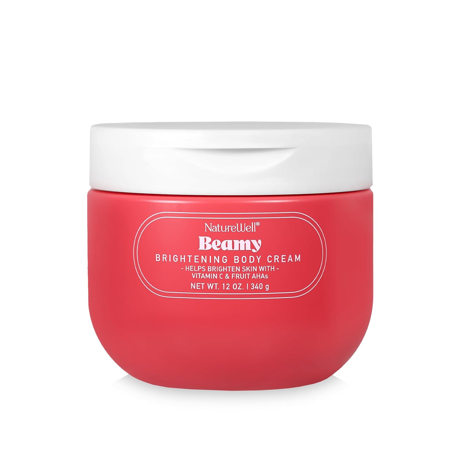 About this item Brightens and Revitalizes with Vitamin C: Formulated with Vitamin C, this cream helps support a more even tone and a visibly brighter appearance. Known for its antioxidant benefits, Vitamin C contributes to a fresher, more energized look. With consistent use, it helps diminish the appearance of dullness and uneven areas. The result is a healthy-looking glow that feels just as good as it looks. Fruit AHAs Gently Smooth Texture: Naturally derived Fruit Alpha Hydroxy Acids (AHAs) help smooth the skinâs surface by encouraging gentle exfoliation. These mild acids assist in removing dead skin cells, allowing brighter, softer skin to emerge. Ideal for use year-round, this step helps enhance skinâs radiance without the need for harsh scrubs. Itâs a thoughtful way to refresh and renew your routine. Hydrates with Glycerin for Lasting Softness: Glycerin draws moisture into the skin and helps keep it there, improving softness without a heavy feel. It creates a cushiony finish that lasts beyond initial application, even in dry climates. This hydration boost also supports overall skin comfort and resilience. A must-have ingredient for keeping your skin feeling consistently smooth. Nourishes with Shea Butter and Mango Seed Butter: Shea Butter and Mango Seed Butter help reinforce the skinâs barrier and smooth dry patches. Together, they provide a conditioning effect that leaves your skin feeling supple and velvety. These emollients support daily comfort while helping to maintain skin's balance. They also contribute to the creamâs soft, indulgent texture. The NatureWell Difference: NatureWell, we believe skincare should support not just your skin, but your confidence and well-being. Developed by a team of women dedicated to delivering better-for-you beauty, our products are powered by thoughtful ingredients, clean formulations, and sensory experiences that make you feel good. The Beamy Body Cream is a reflection of that missionâluxurious, nourishing, and crafted to elevate your everyday. Choose NatureWell for skincare thatâs as radiant as you are. âș See more product details,Brightens and Revitalizes with Vitamin C: Formulated with Vitamin C, this cream helps support a more even tone and a visibly brighter appearance. Known for its antioxidant benefits, Vitamin C contributes to a fresher, more energized look. With consistent use, it helps diminish the appearance of dullness and uneven areas. The result is a healthy-looking glow that feels just as good as it looks,Fruit AHAs Gently Smooth Texture: Naturally derived Fruit Alpha Hydroxy Acids (AHAs) help smooth the skinâs surface by encouraging gentle exfoliation. These mild acids assist in removing dead skin cells, allowing brighter, softer skin to emerge. Ideal for use year-round, this step helps enhance skinâs radiance without the need for harsh scrubs. Itâs a thoughtful way to refresh and renew your routine,Hydrates with Glycerin for Lasting Softness: Glycerin draws moisture into the skin and helps keep it there, improving softness without a heavy feel. It creates a cushiony finish that lasts beyond initial application, even in dry climates. This hydration boost also supports overall skin comfort and resilience. A must-have ingredient for keeping your skin feeling consistently smooth,Nourishes with Shea Butter and Mango Seed Butter: Shea Butter and Mango Seed Butter help reinforce the skinâs barrier and smooth dry patches. Together, they provide a conditioning effect that leaves your skin feeling supple and velvety. These emollients support daily comfort while helping to maintain skin's balance. They also contribute to the creamâs soft, indulgent texture,The NatureWell Difference: NatureWell, we believe skincare should support not just your skin, but your confidence and well-being. Developed by a team of women dedicated to delivering better-for-you beauty, our products are powered by thoughtful ingredients, clean formulations, and sensory experiences that make you feel good. The Beamy Body Cream is a reflection of that missionâluxurious, nourishing, and crafted to elevate your everyday. Choose NatureWell for skincare thatâs as radiant as you are