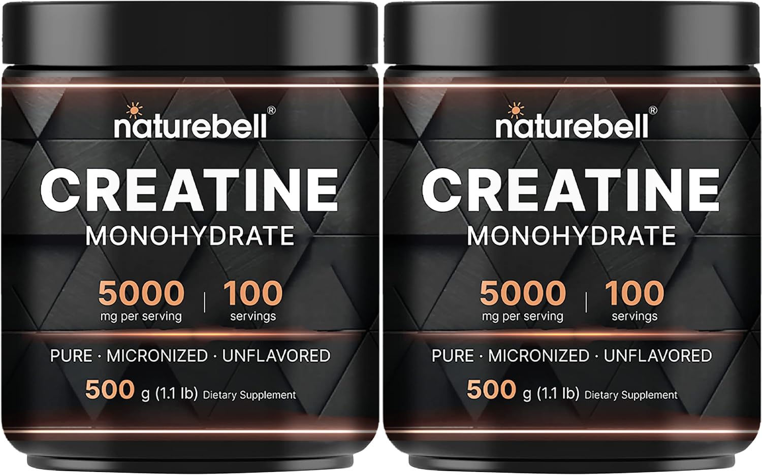 Naturebell 2 Pack Instant Creatine Monohydrate Powder 500 Grams, 5000Mg Per Serving, Unflavored Micronized Creatine Powder - Pre Workout | Keto | Vegan | Dissolves Easy | Filler Free