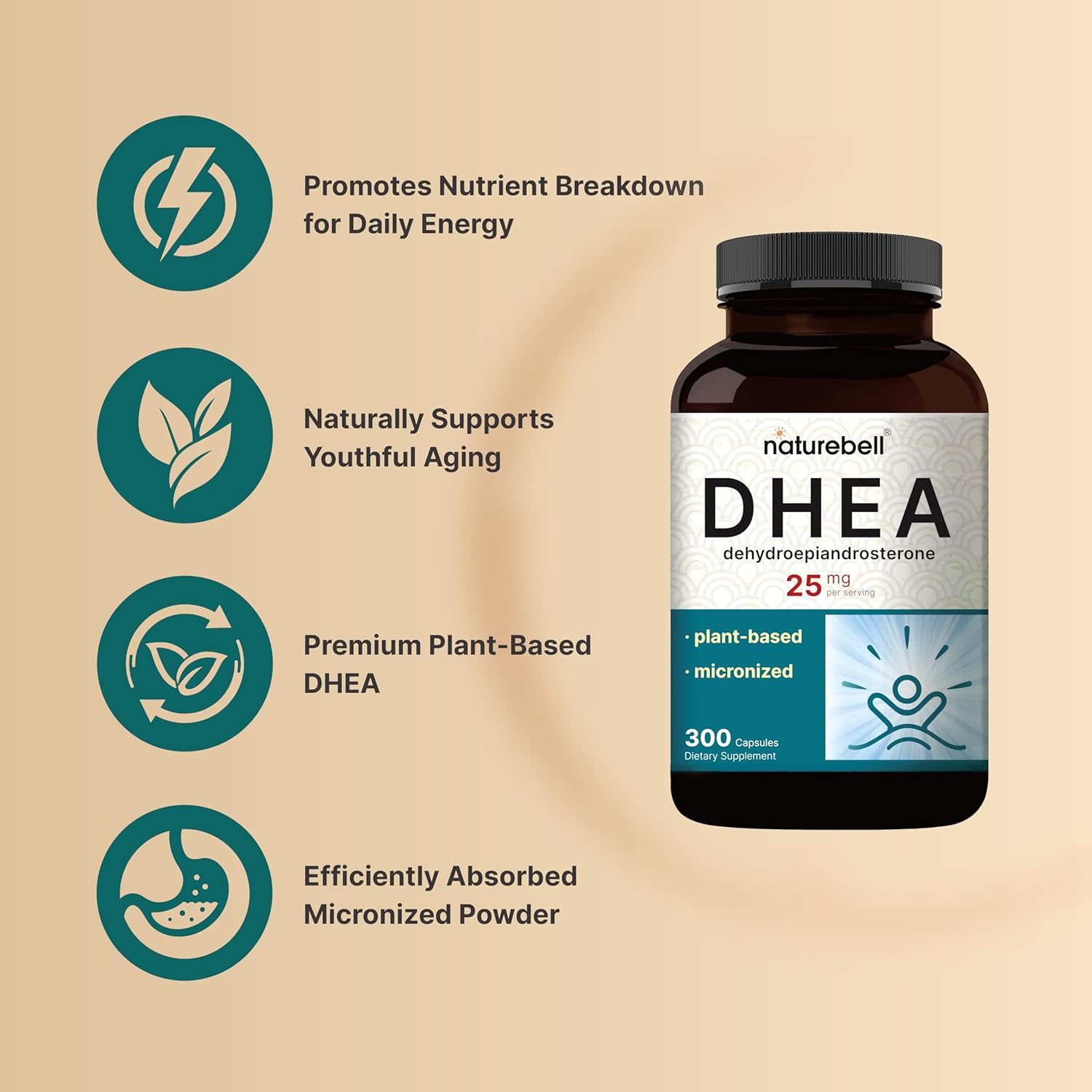 Naturebell Dhea 25Mg, 300 Capsules | Micronized Grade For Better Absorption – Plant-Based Dhea Source – Supports Energy Levels & Healthy Aging For Men And Women – Non-Gmo