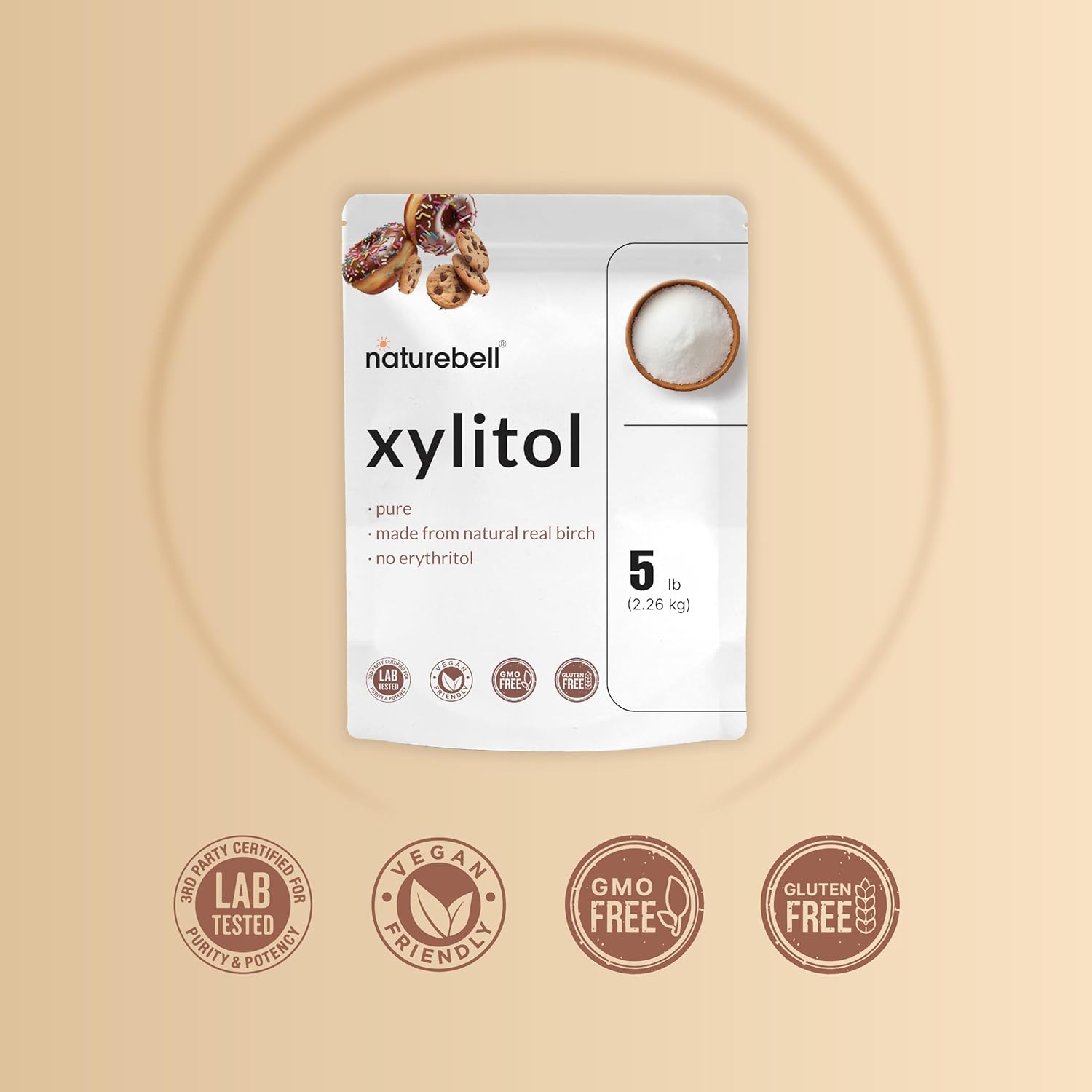 Naturebell Xylitol Sweetener, 5Lbs | Natural Birch Crystal Source – 1:1 Sugar Substitute – Sweet Flavor With No Erythritol – Low Calorie & Glycemic Impact – Sugar Free, No Aftertaste, Non-Gmo