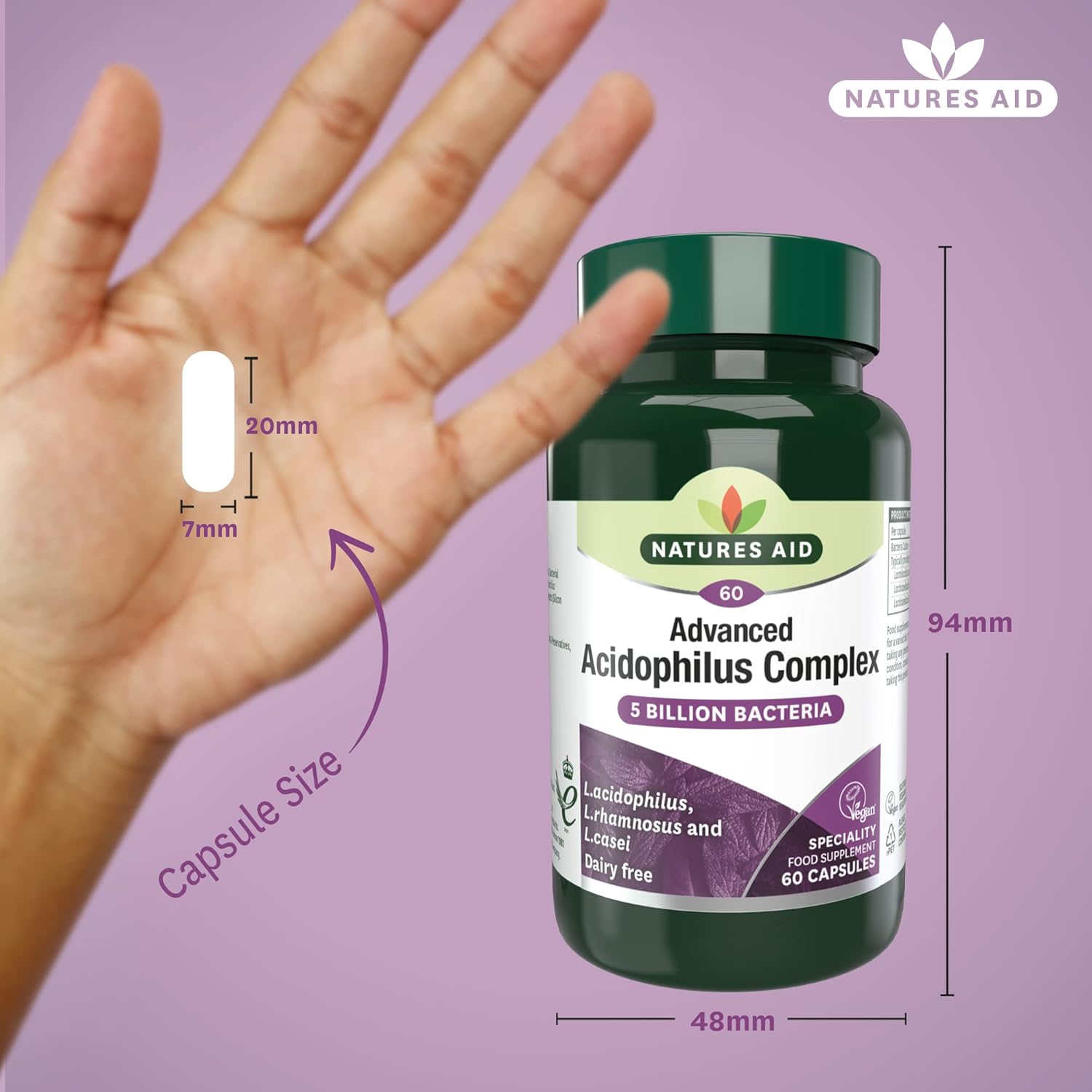Natures Aid Acidophilus Complex 5 Billion Cfu – High Strength Probiotic Supplement 5 Billion Live Bacteria – Supports Digestive Health & Gut Flora – Vegan, Gluten Free, Non-Gmo – 60 Capsules