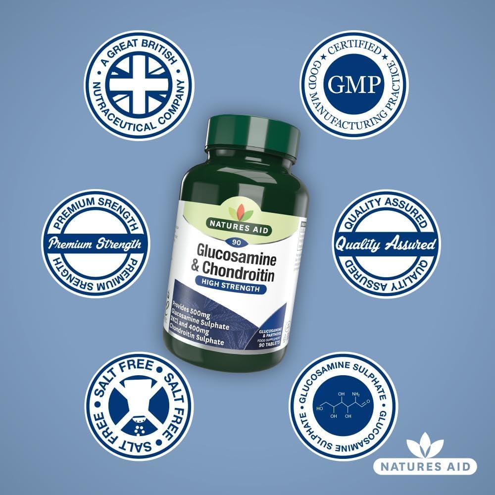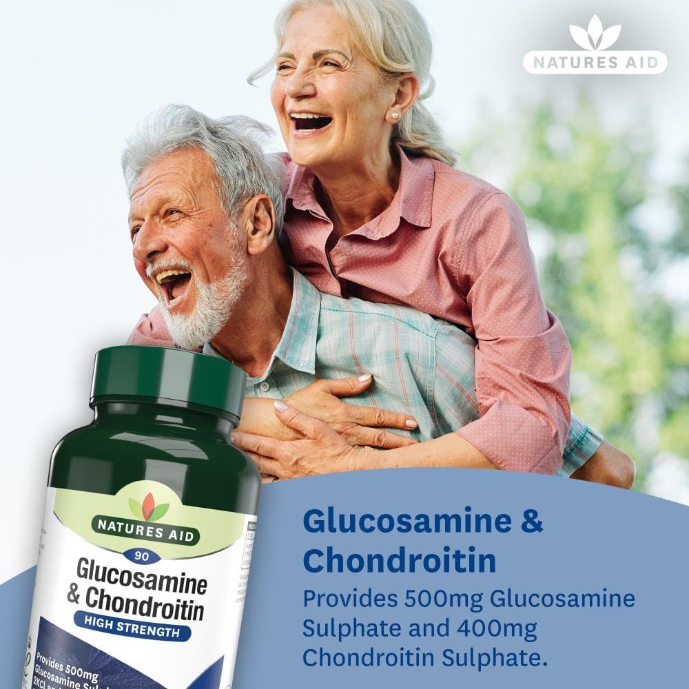 Natures Aid Glucosamine Sulphate 500Mg & Chondroitin 400Mg - High Potency Joint Supplement - Supports Mobility, Flexibility, Cartilage & Collagen Health - Gluten-Free, Non-Gmo - 60 Capsules