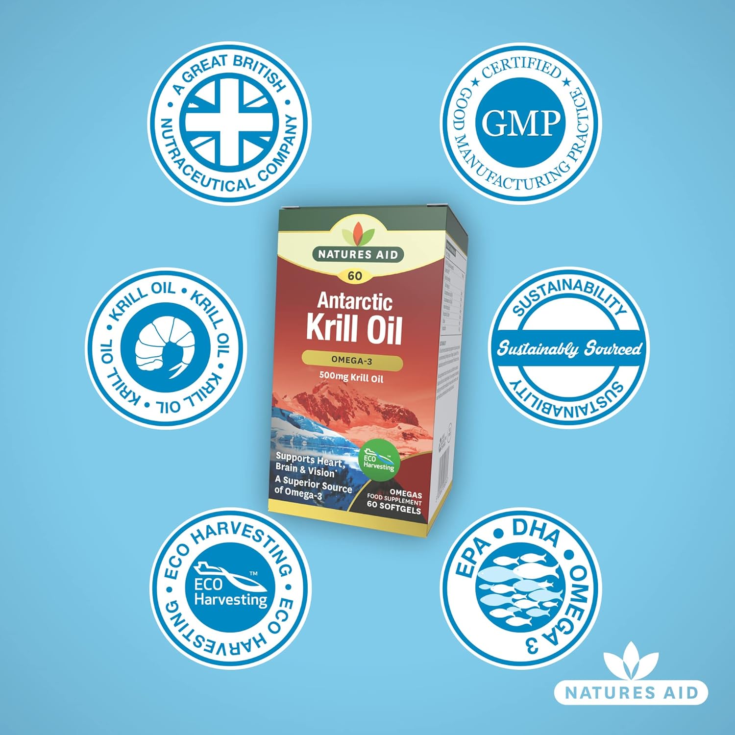 Natures Aid Krill Oil 500Mg Capsules – High Omega-3 Epa & Dha To Support Heart, Brain & Vision – High Absorption Phospholipids & Astaxanthin – Sustainably Sourced – No Fishy Aftertaste – 60 Softgels