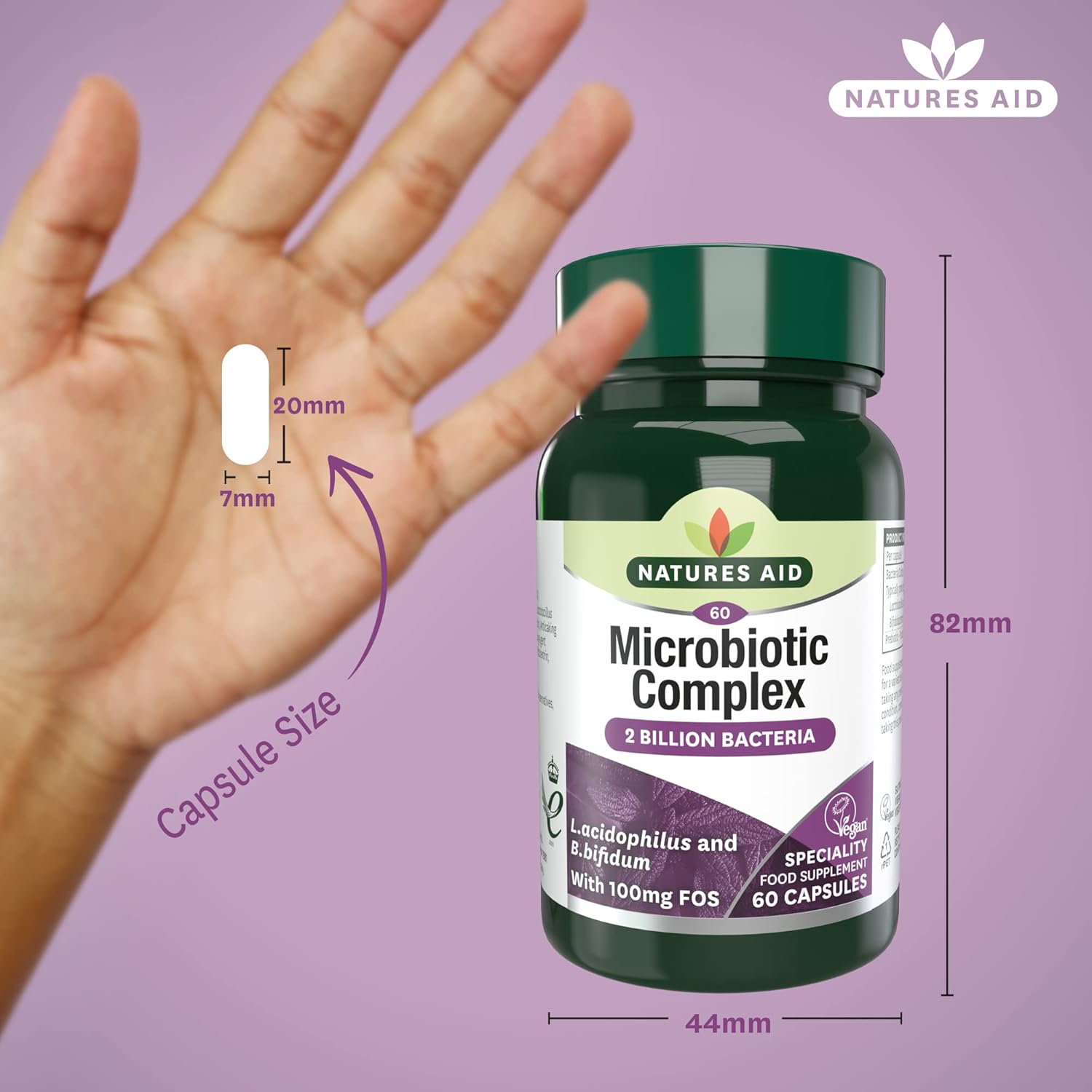 Natures Aid Microbiotic Complex – Digestive Friendly Bacteria Supplement Gut Health Support – High Strength Lactobacillus Acidophilus – Vegan, Vegetarian, Non-Gmo, Gluten Free - 60 Capsules