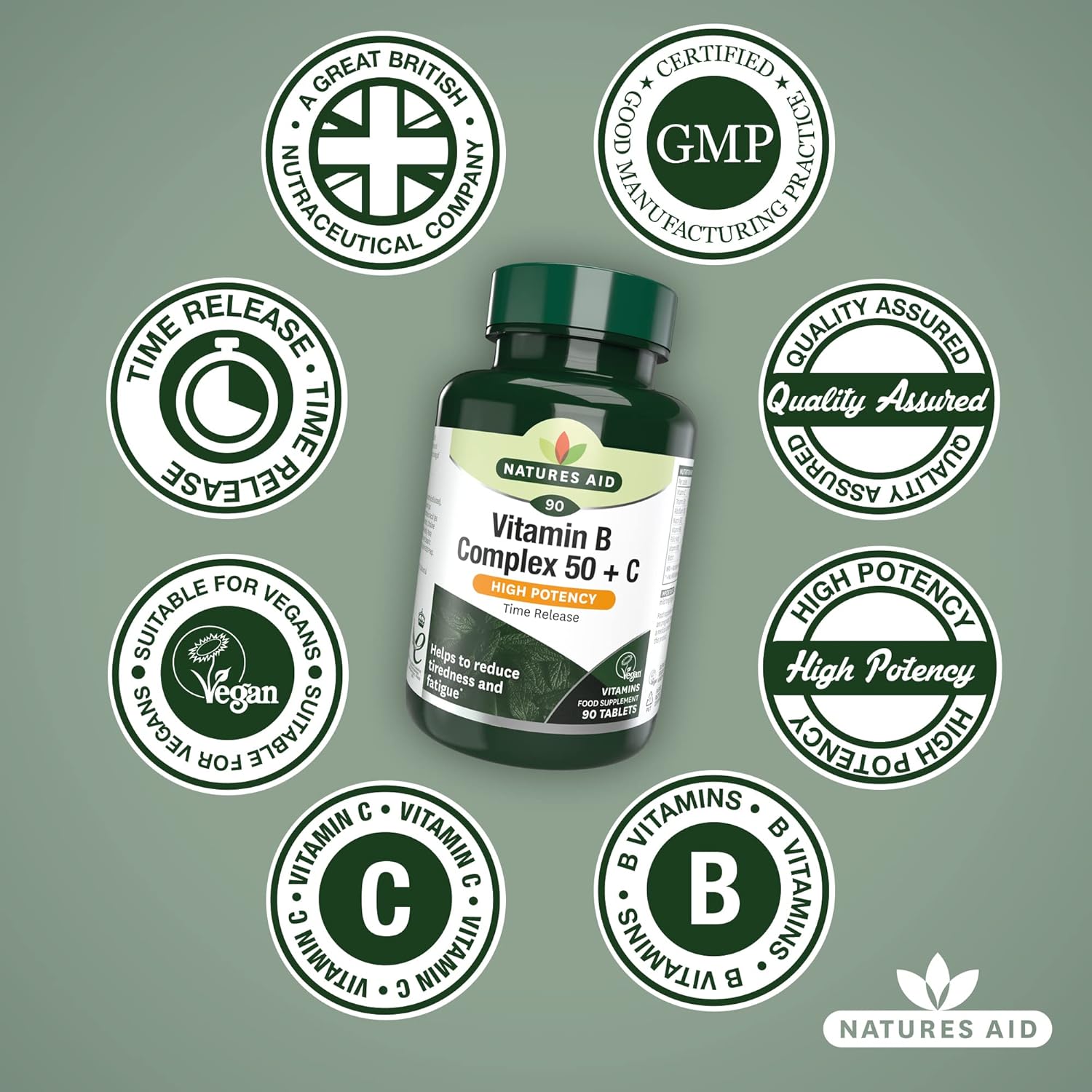 Natures Aid Vitamin B Complex 100Mg – High Strength B Vitamins For Energy, Metabolism, Nervous System & Immune Support – Vegan, Gluten-Free, Non-Gmo – Natural Supplement – 60 Tablets